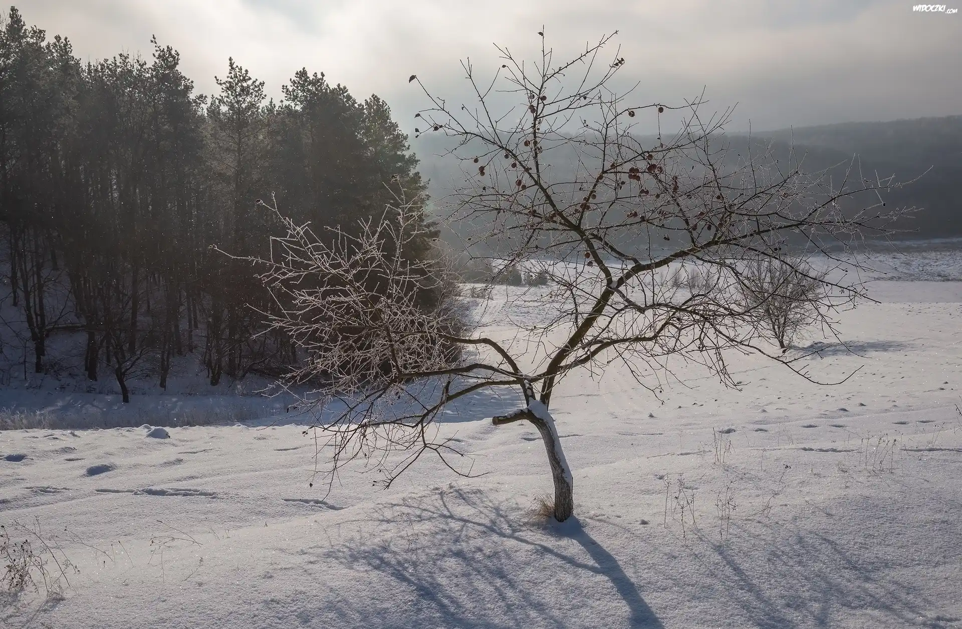 Zima, Drzewa, Mgła