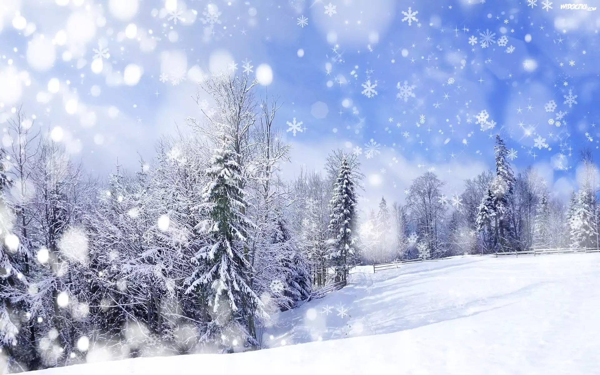 Drzewa, Śnieg, Zima, Gwiazdki
