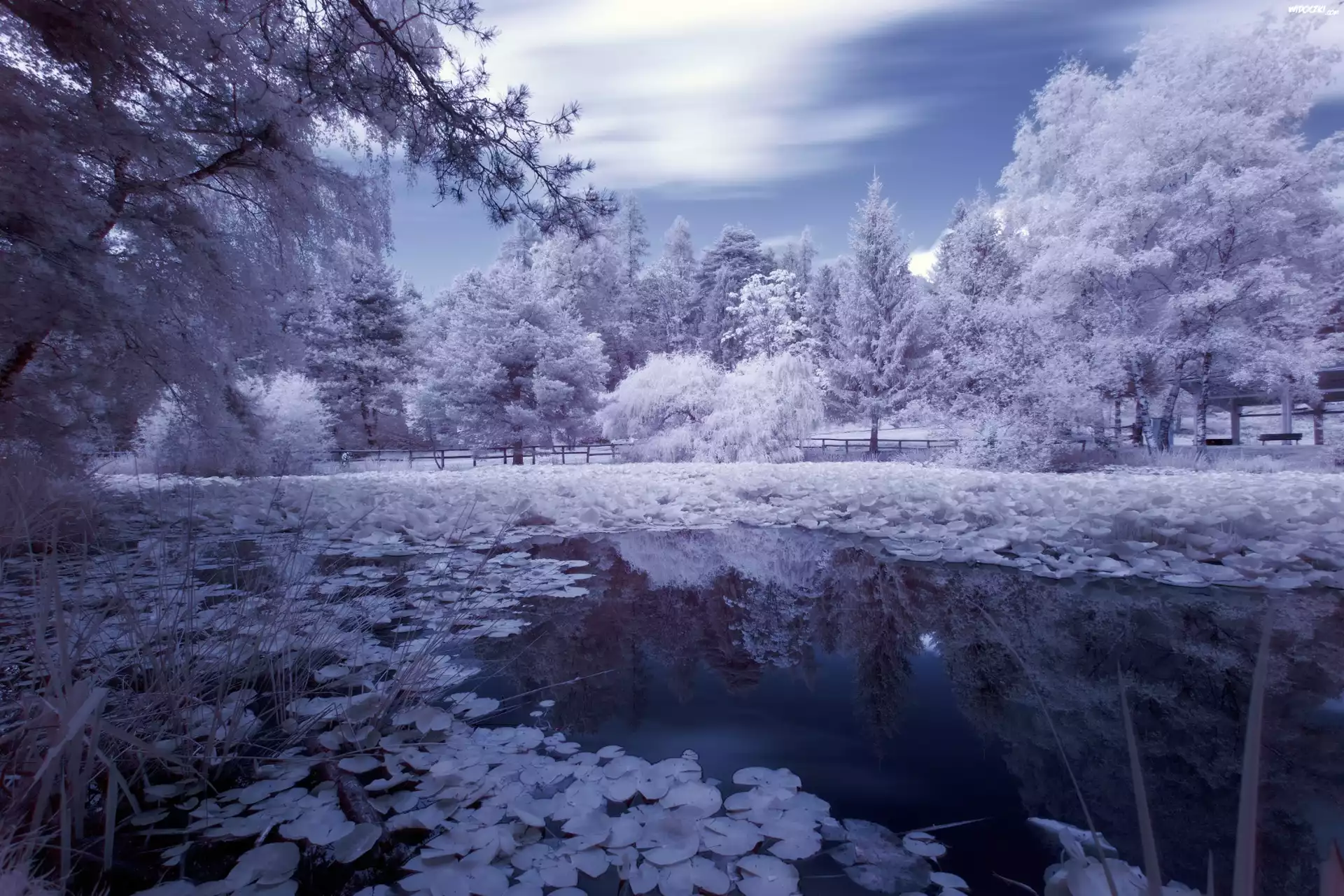 Zdjęcia, Zima, Drzewa, Staw