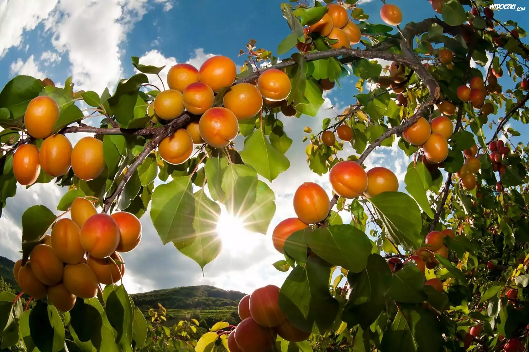 Zdjęcia, Drzewko, Morelowe, Owoce, Promienie, Słońca