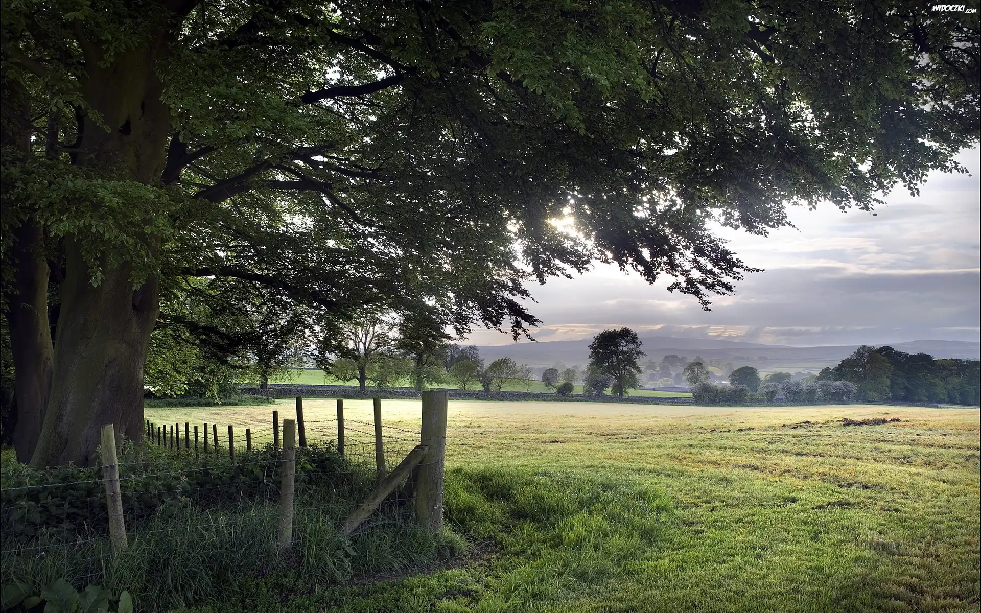 Zdjęcia, Łąka, Drzewo, Płot