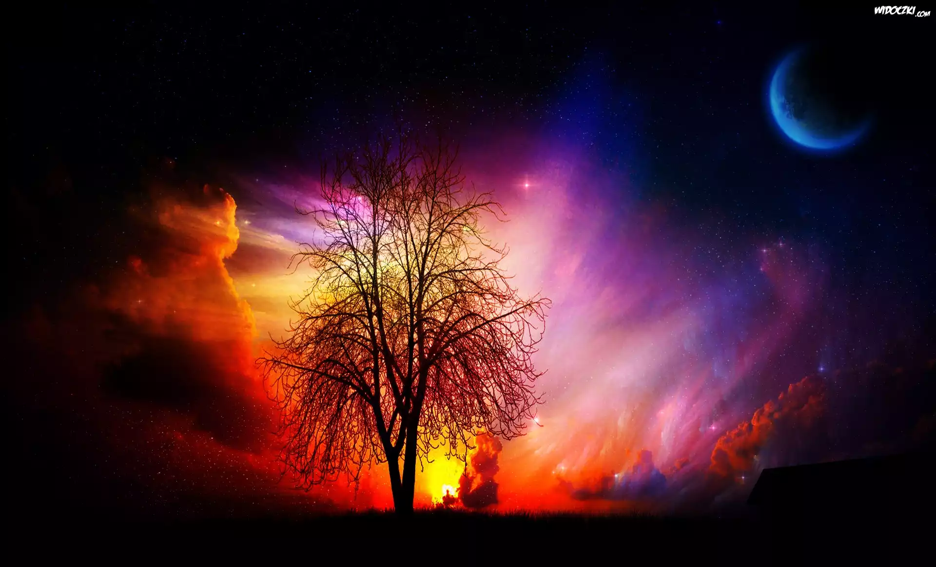 Zdjęcia, Drzewo, Kolorowe, Chmury, Planeta