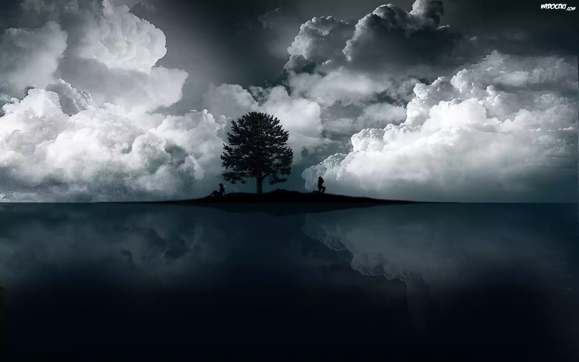 Chmury, Drzewo, Wyspa