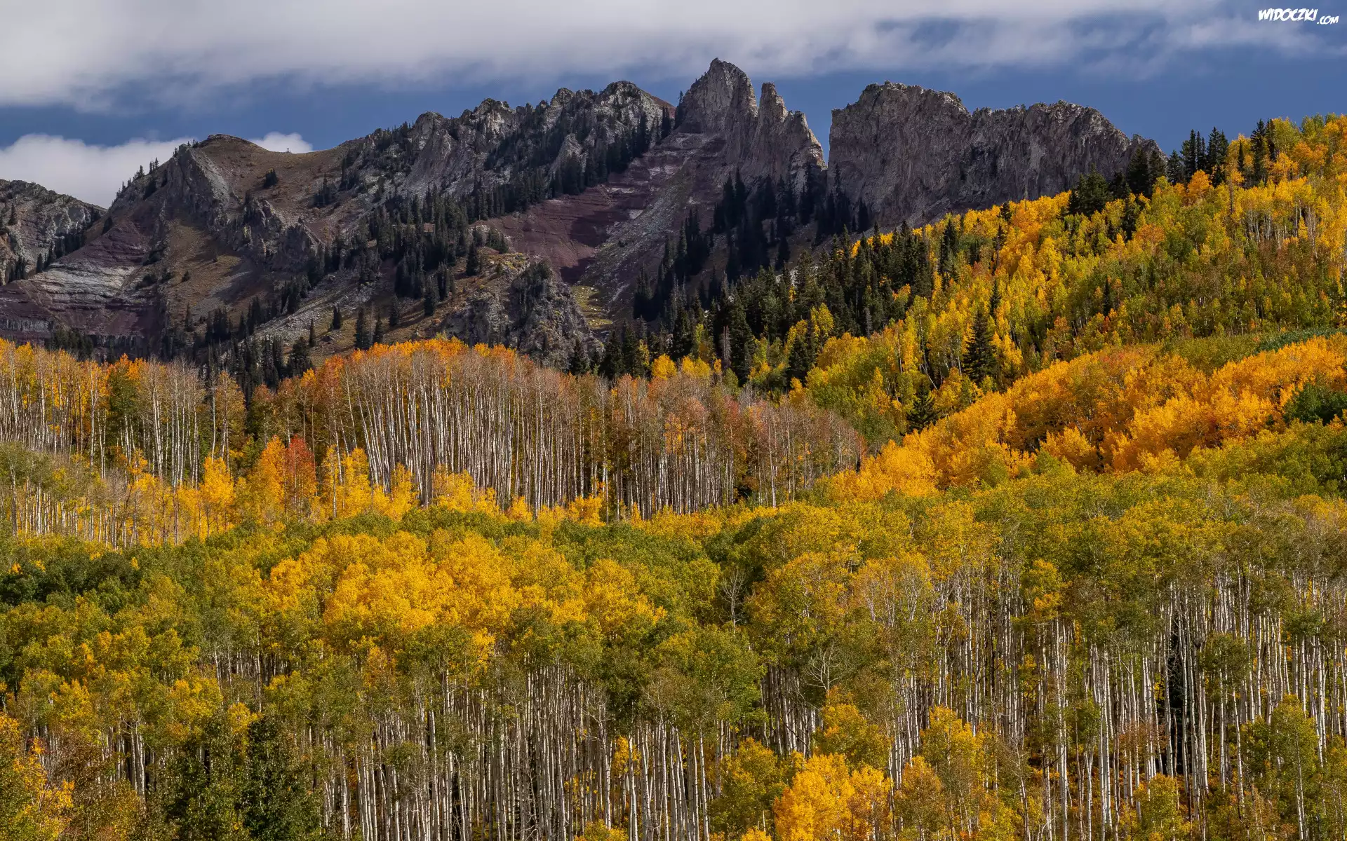 Zdjęcia, Jesień, Drzewo, Góry, Las, Chmury