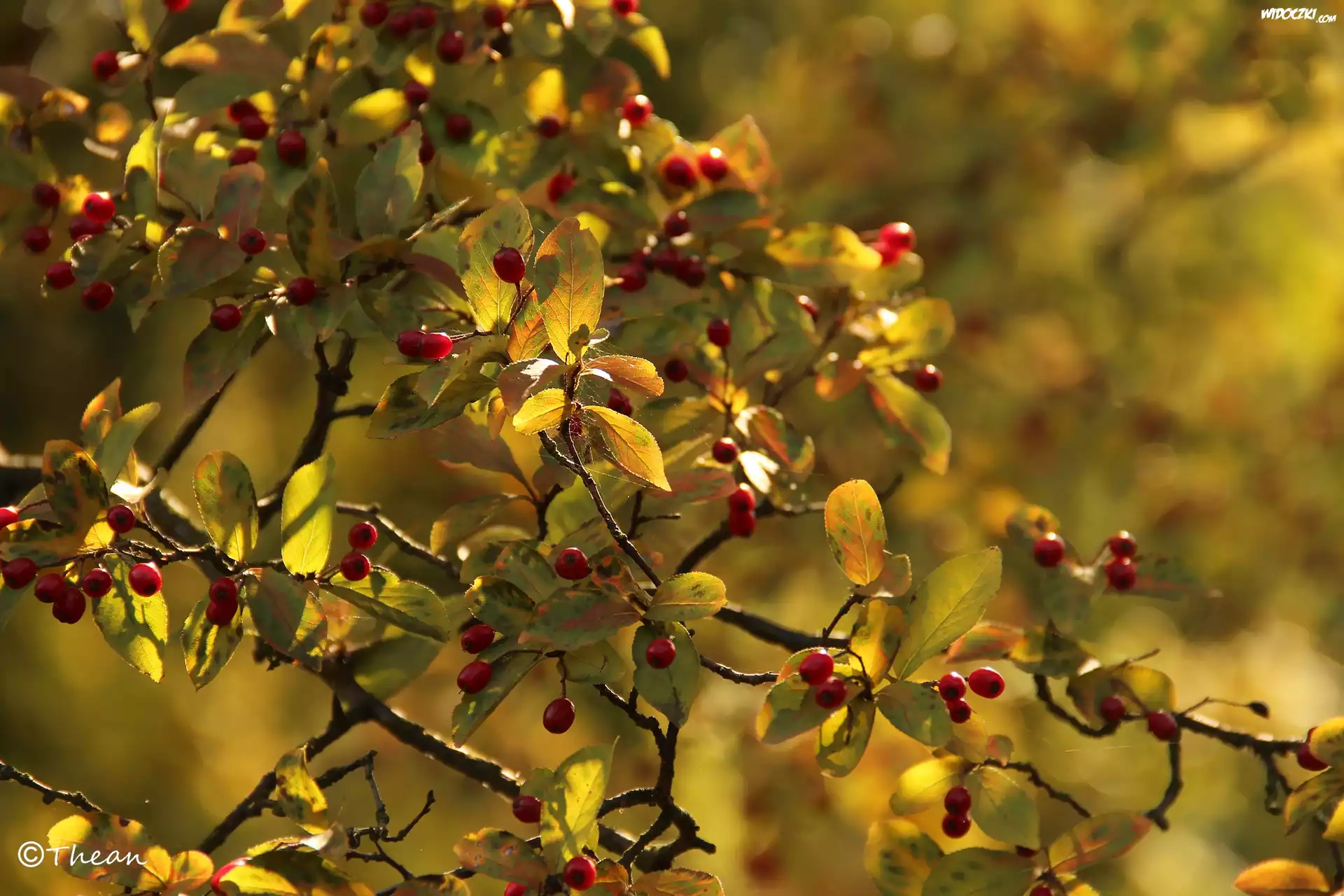 Zdjęcia, Drzewo, Liście, Czerwone, Owoce, Jagody, Jesień