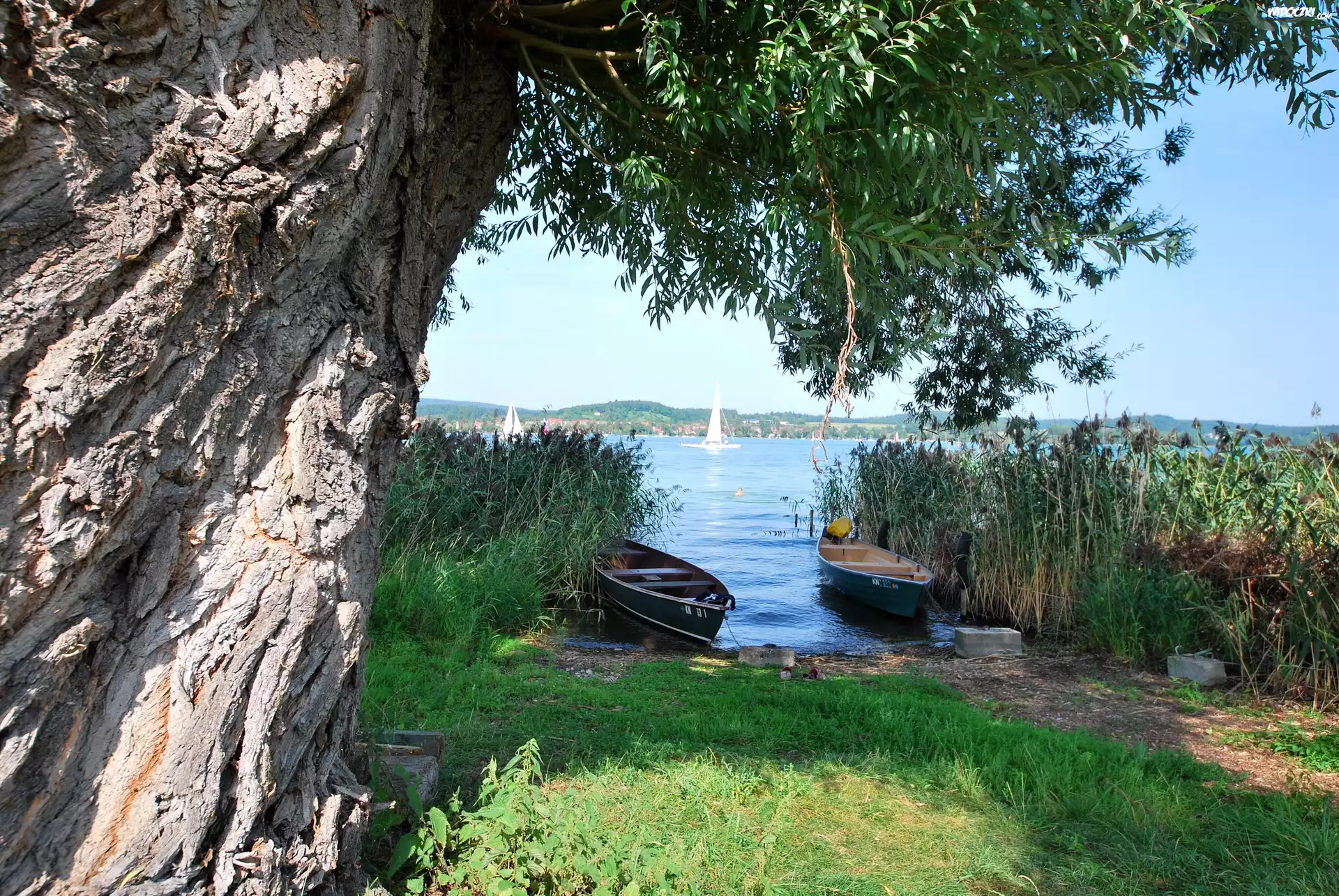 Zdjęcia, Wierzba, Kora, Jezioro, Łódki