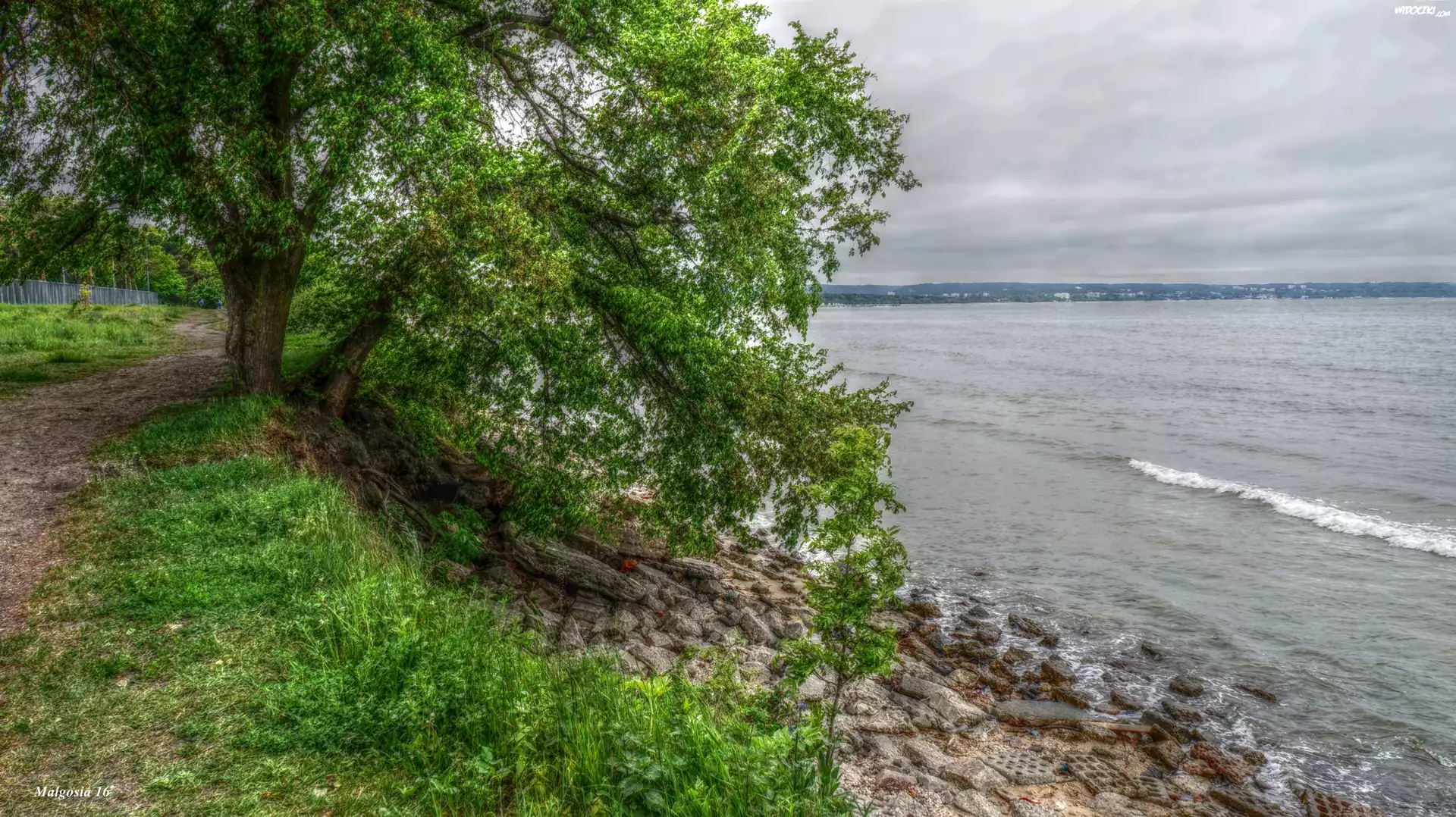 Zdjęcia, Drzewo, Wybrzeże, Morze, Kamienie, HDR