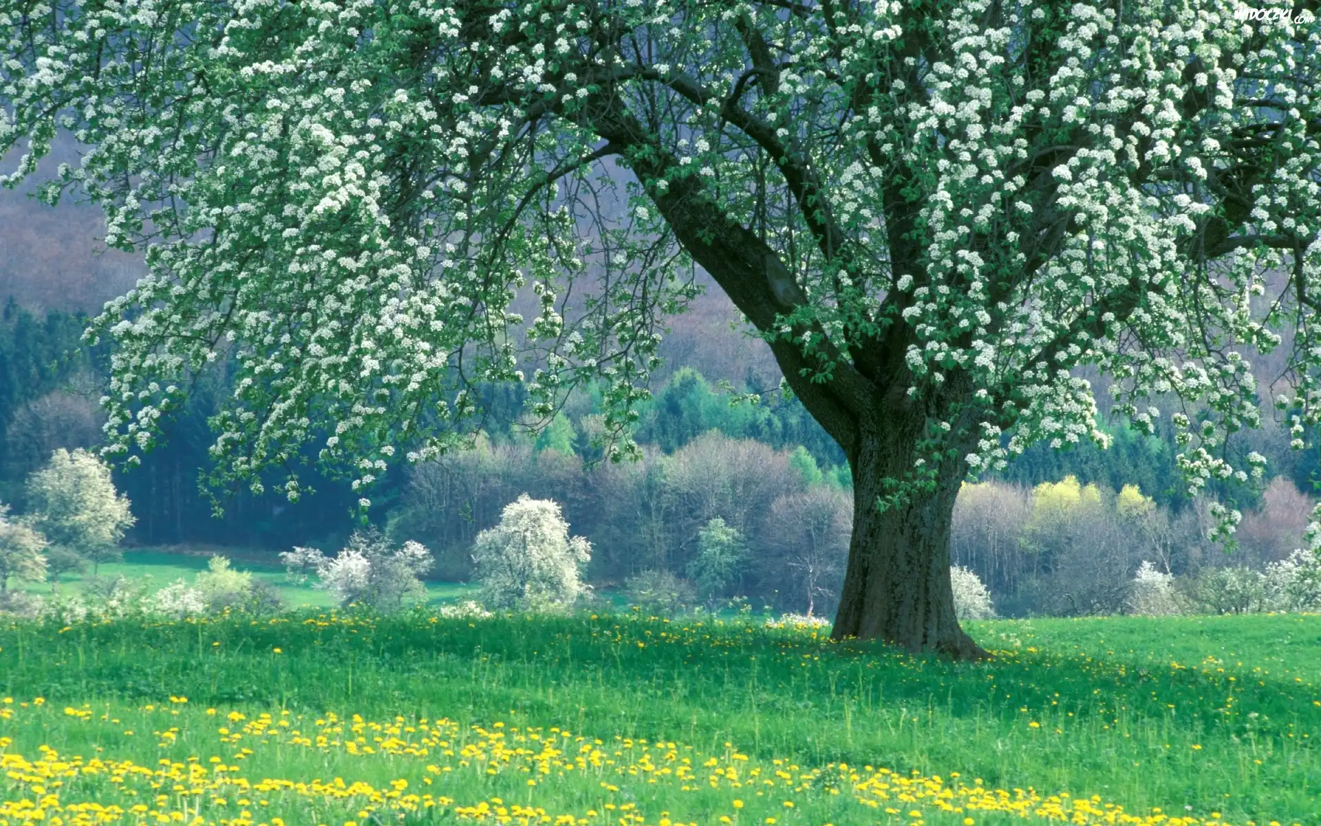 Zdjęcia, Drzewo, Łąka, Kwiat, Las