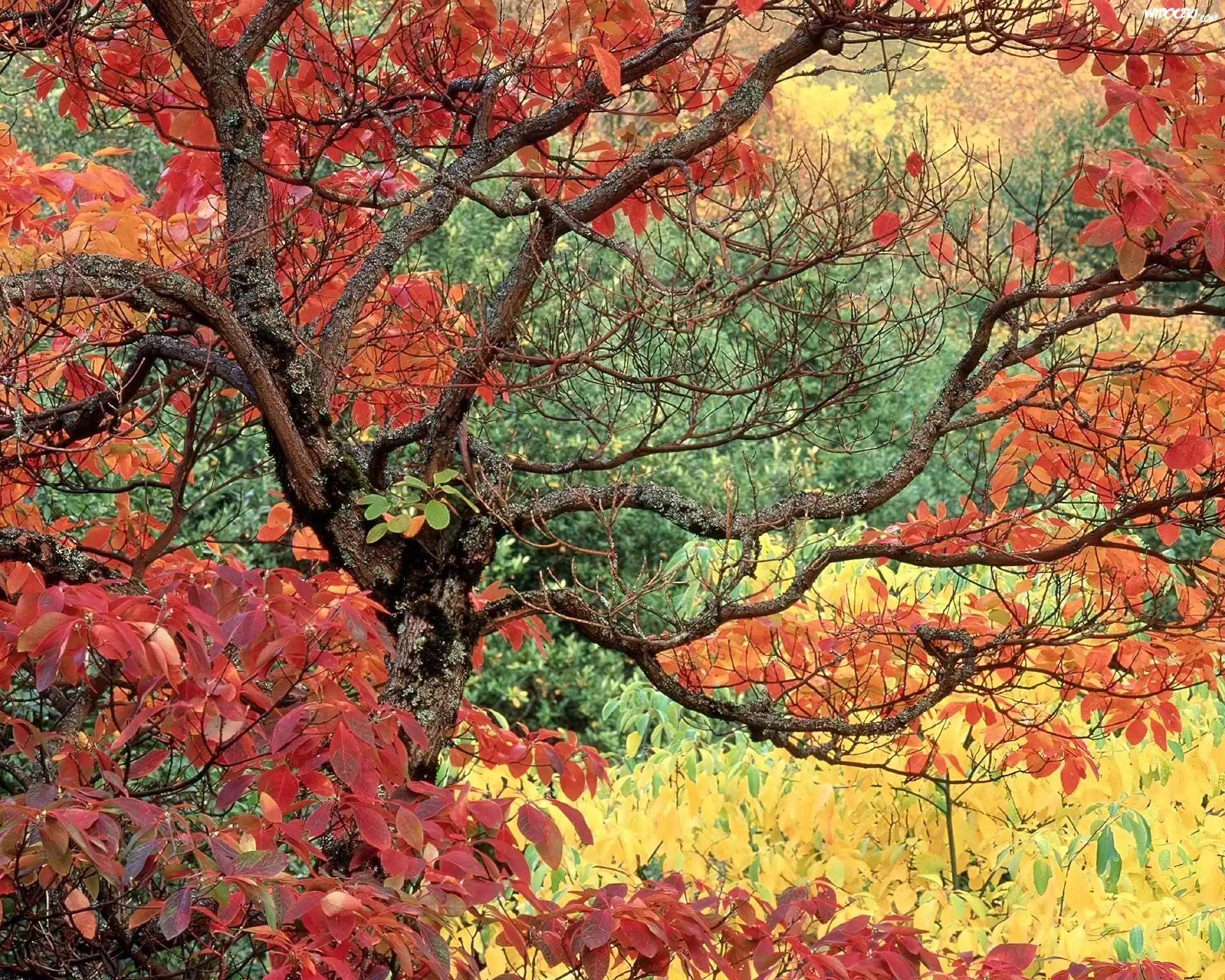 Zdjęcia, Drzewo, Kolorowe, Liście, Las