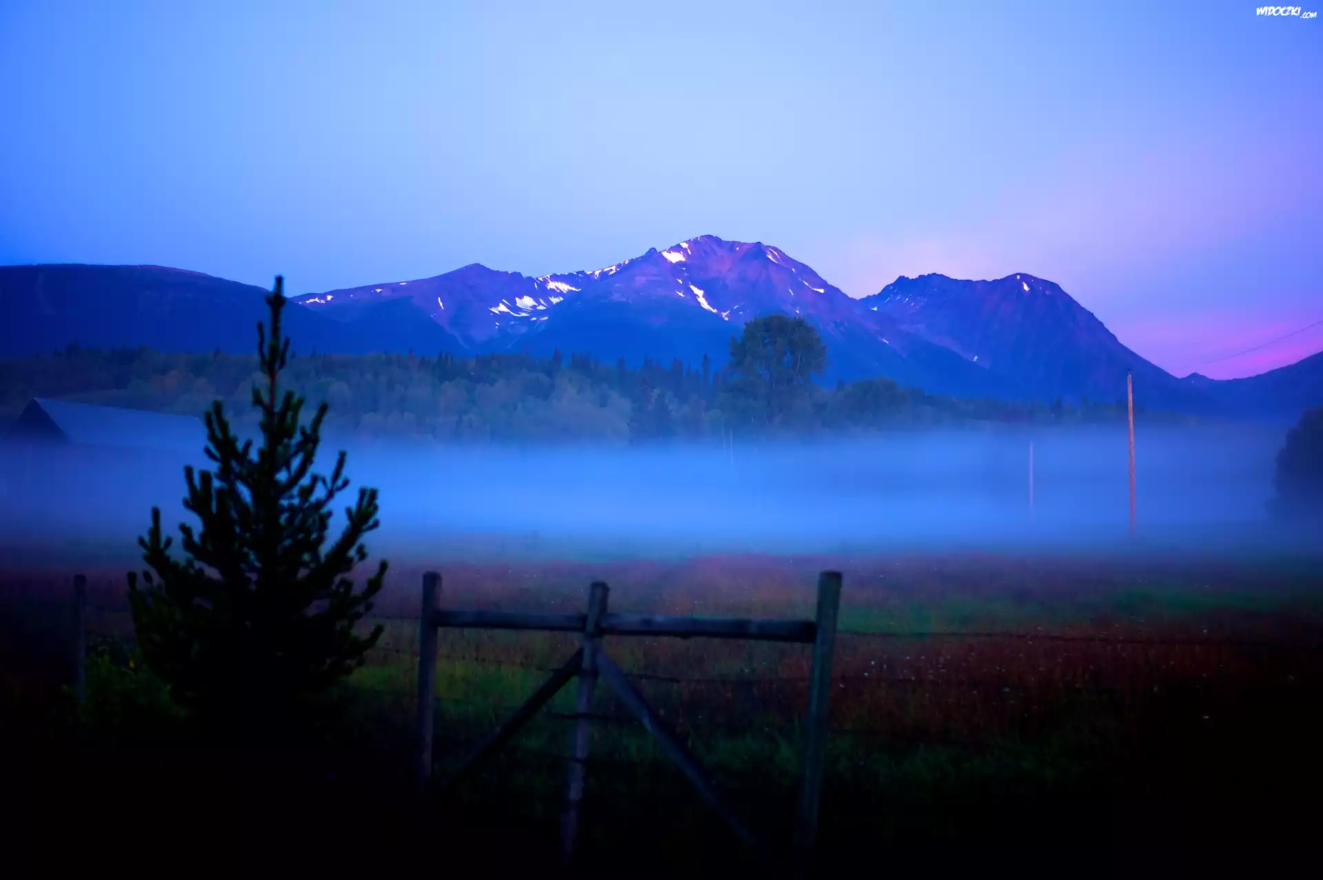Zdjęcia, Drzewo, Płotek, Mgła, Góry