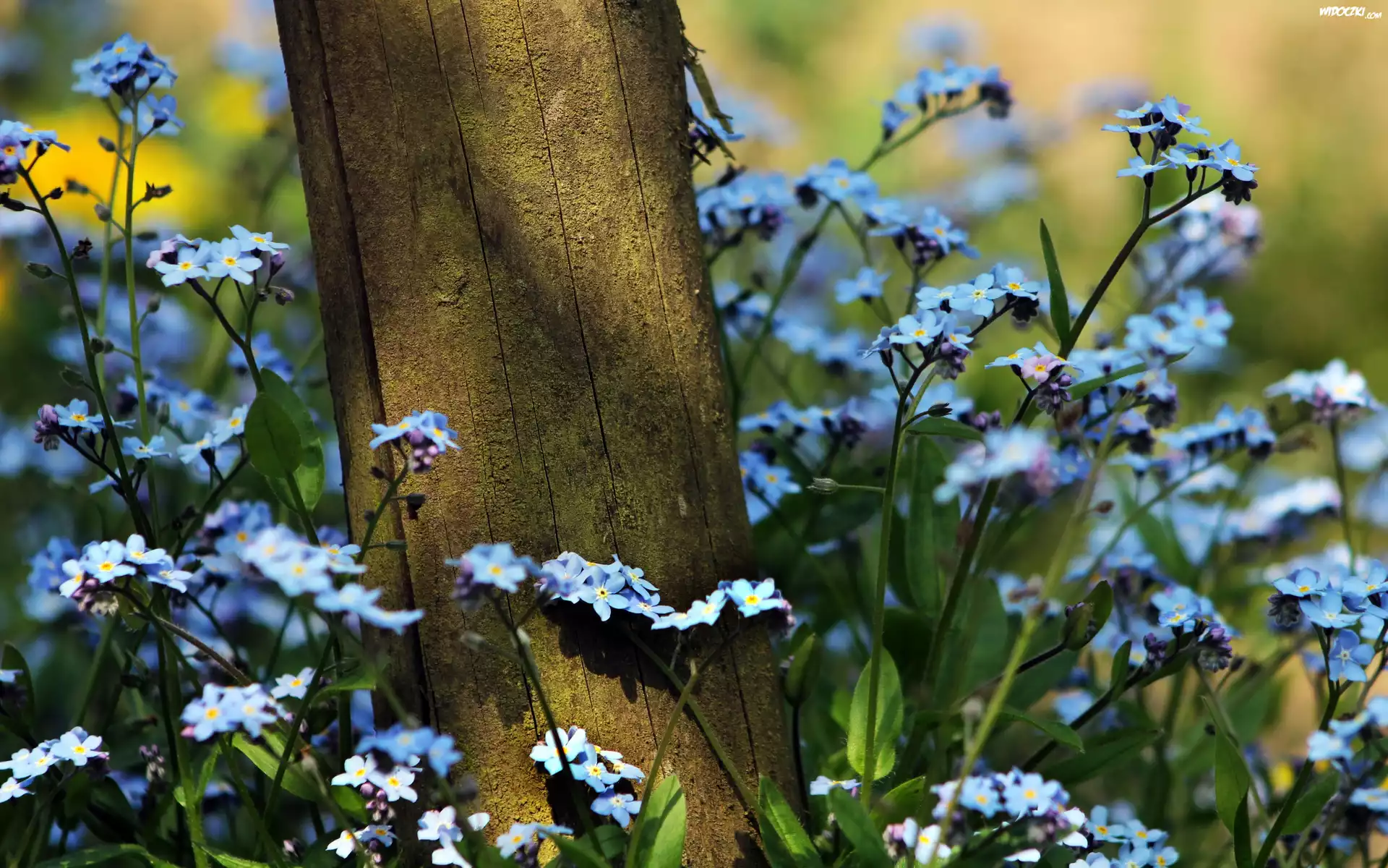 Zdjęcia, Niezapominajki, Drzewo, Łąka