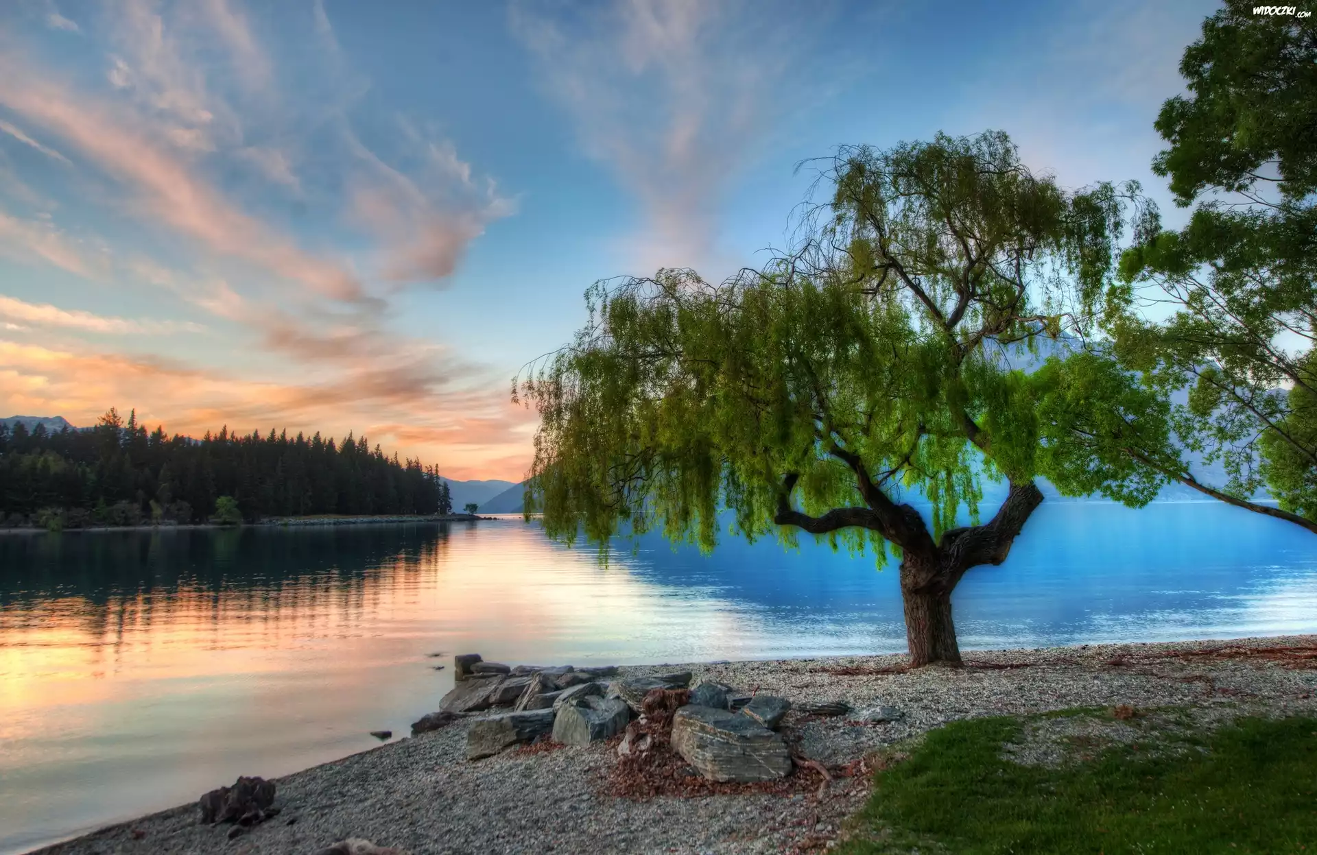 Drzewo, Jezioro, Serene, Nowa Zelandia