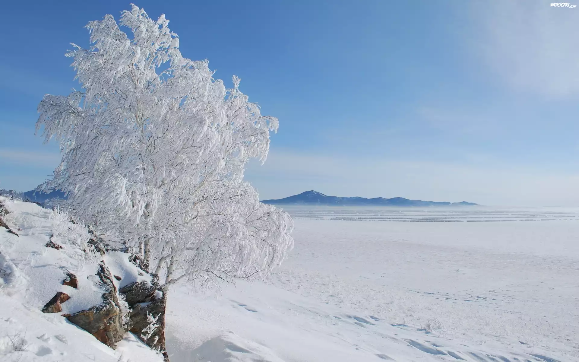 Zdjęcia, Ośnieżone, Drzewo, Góry