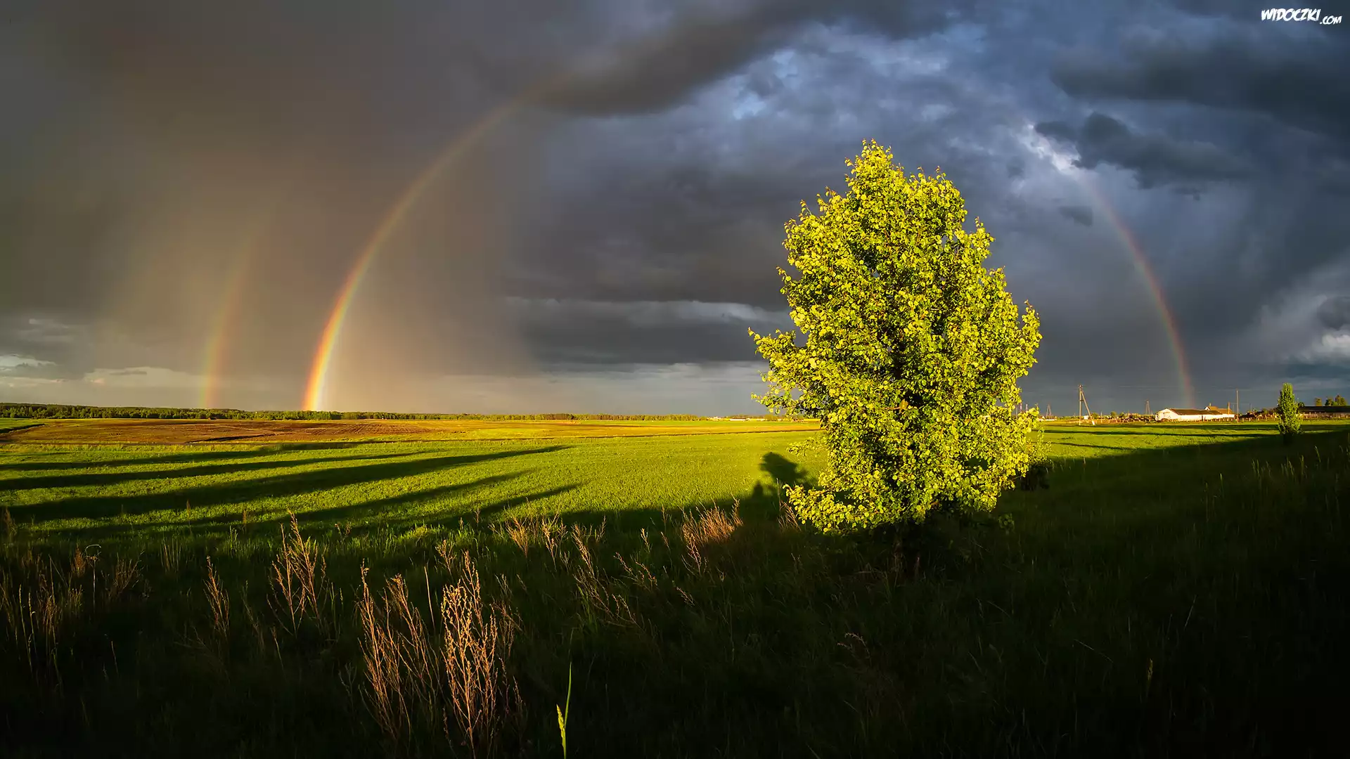 Zdjęcia, Drzewo, Tęcza, Pola