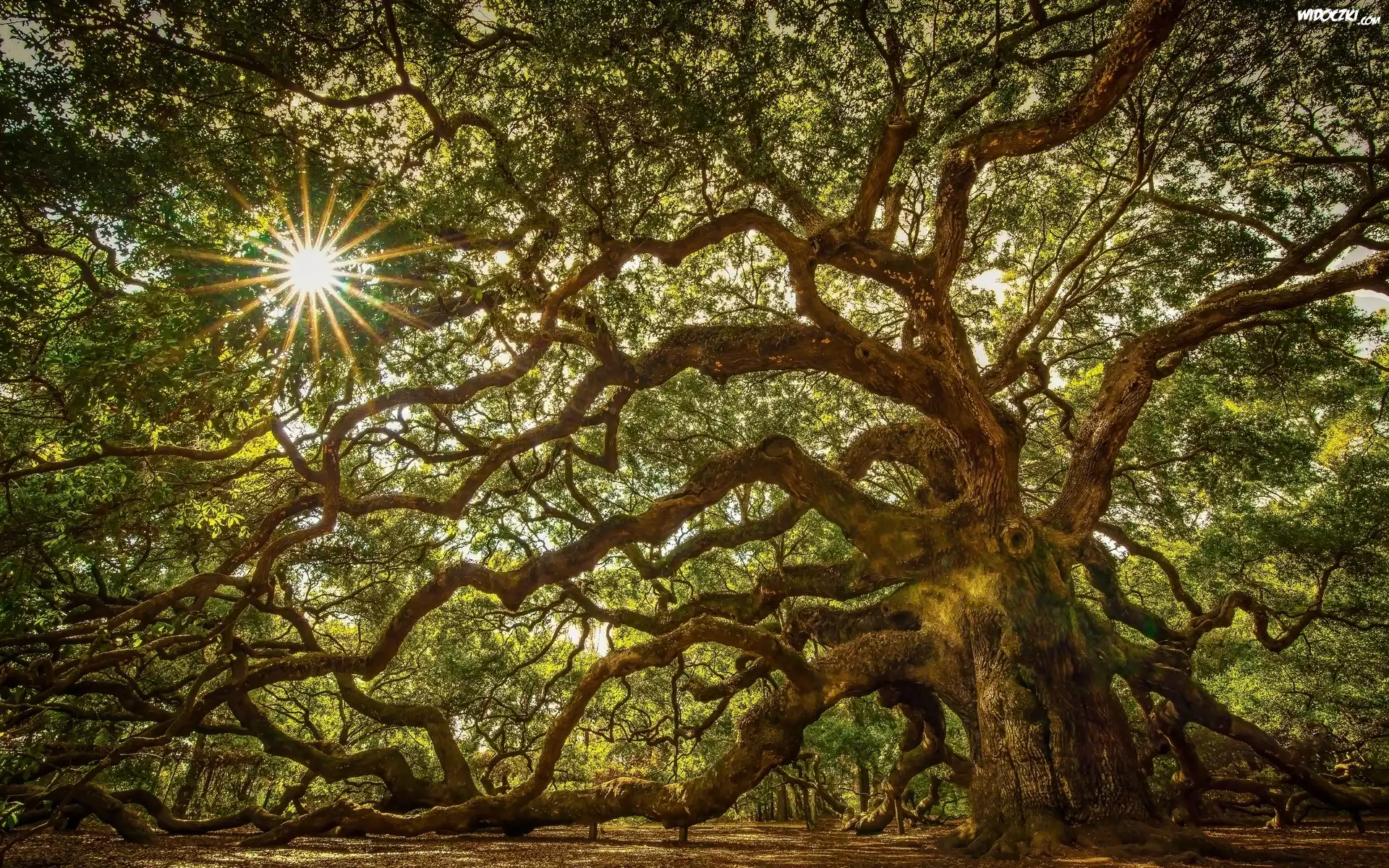 Zdjęcia, Drzewo, Gałęzie, Przebijające, Światło, Promienie, Słońca