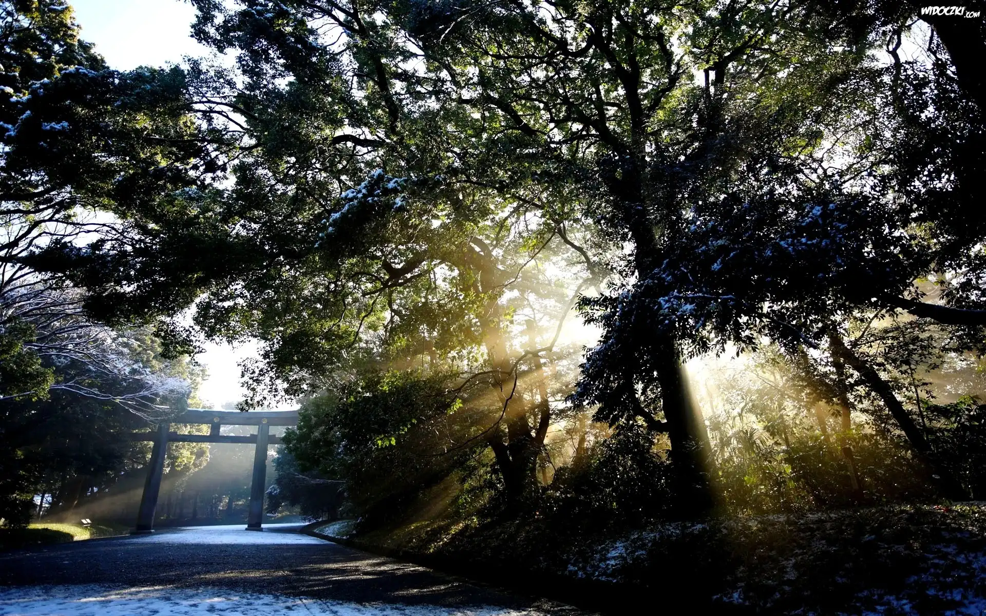 Zdjęcia, Drzewo, Droga, Przebijające, Światło