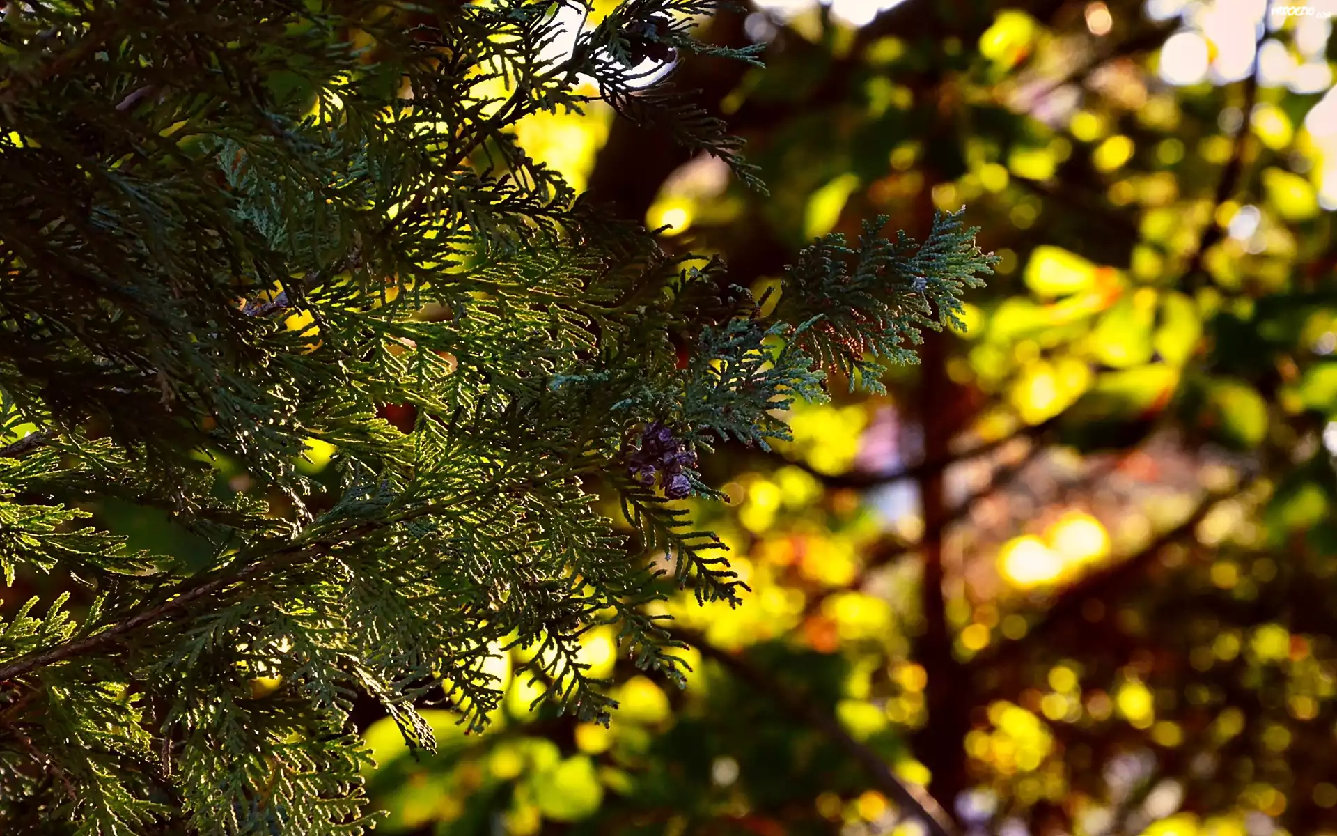 Zdjęcia, Drzewo, Tuja, Gałąz, Przebijające Światło