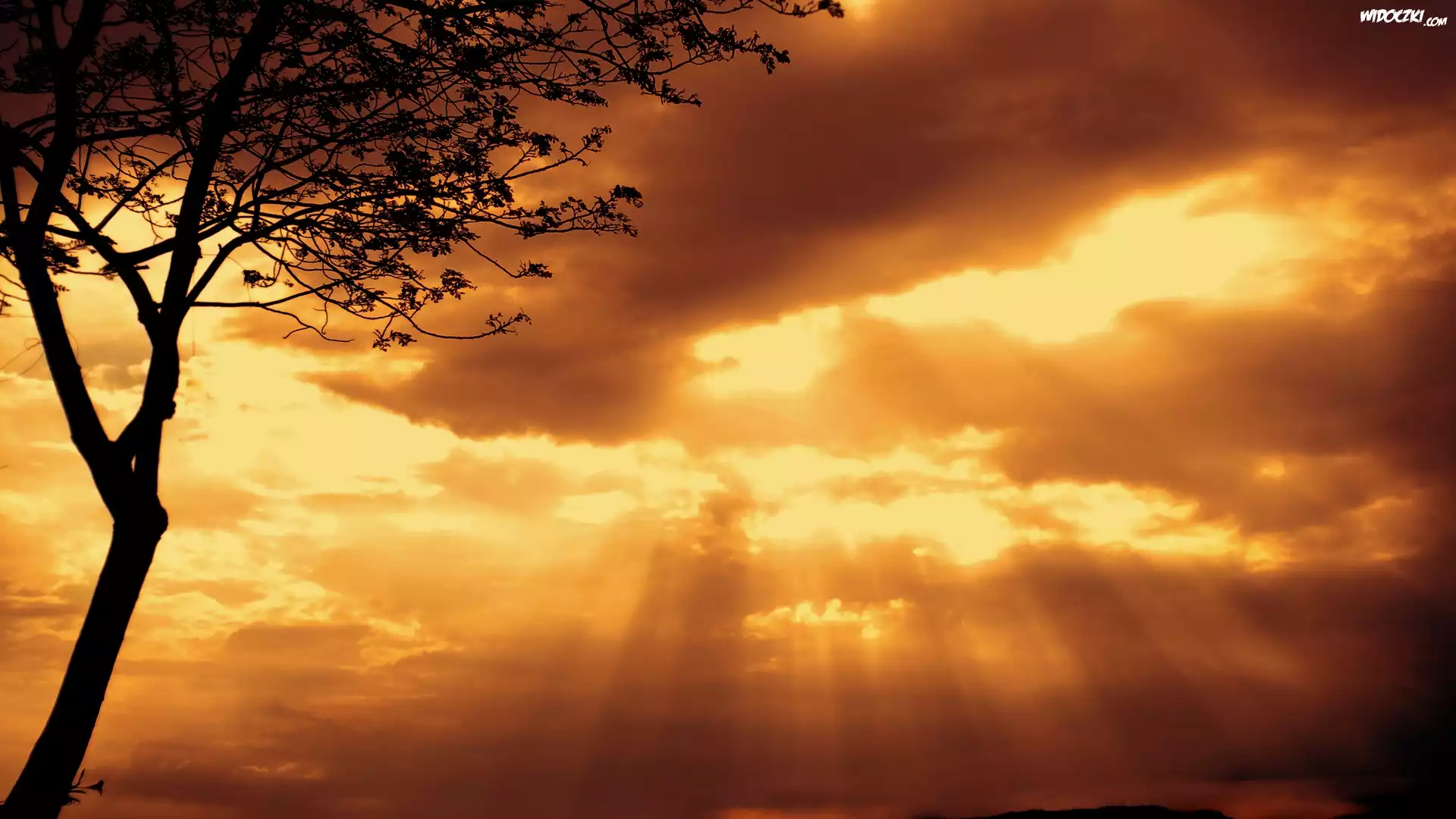 Zdjęcia, Drzewo, Niebo, Przebijające, Światło