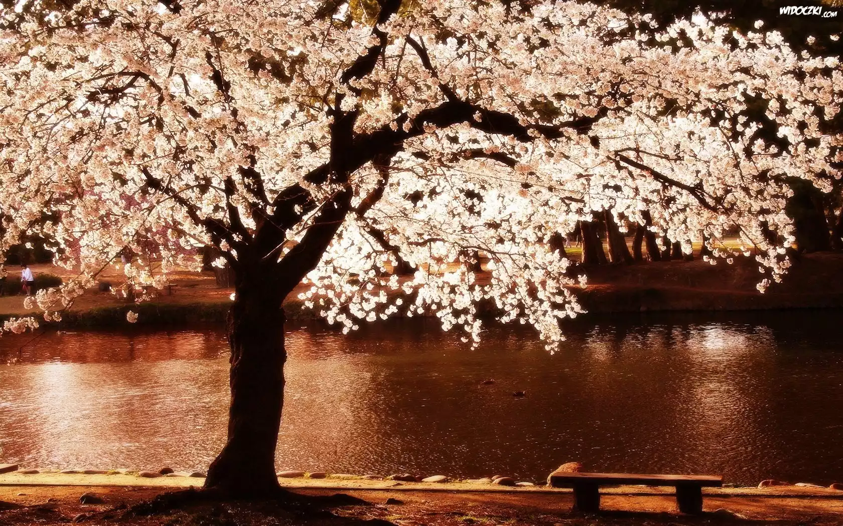 Zdjęcia, Rzeka, Drzewo, Ławka