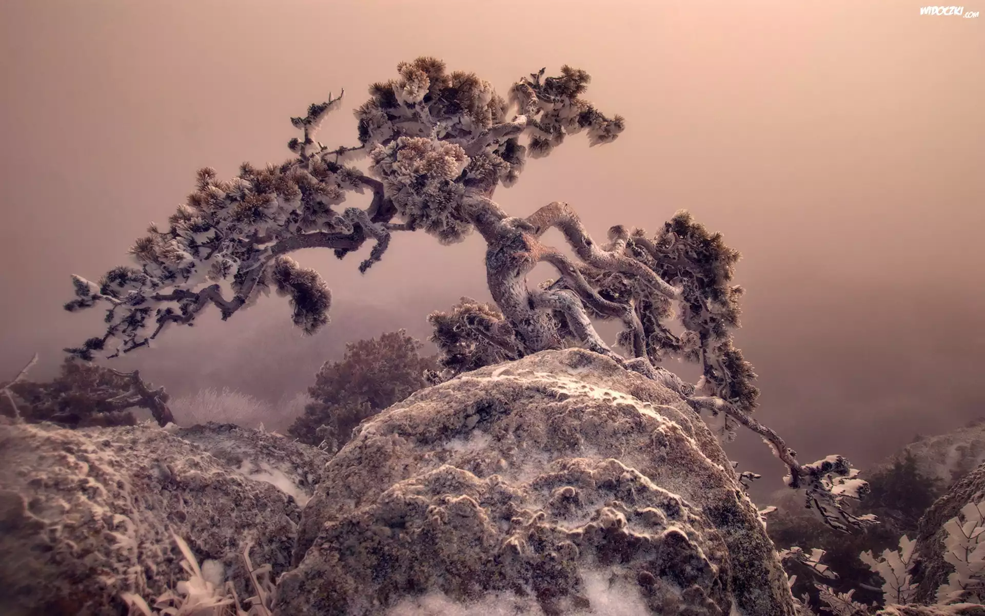 Zdjęcia, Skały, Drzewo, Zima