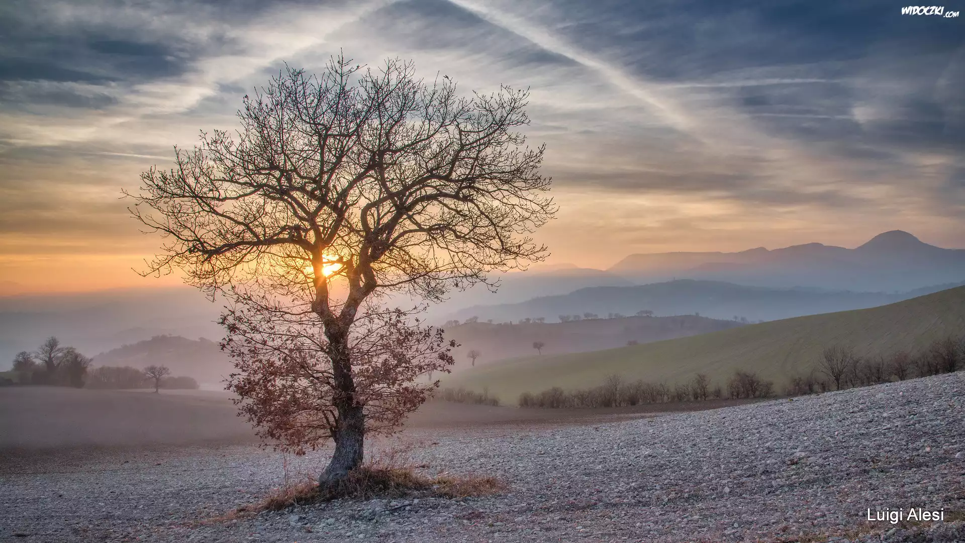 Zdjęcia, Samotne, Drzewo, Słońce, Pole, Wzgórza