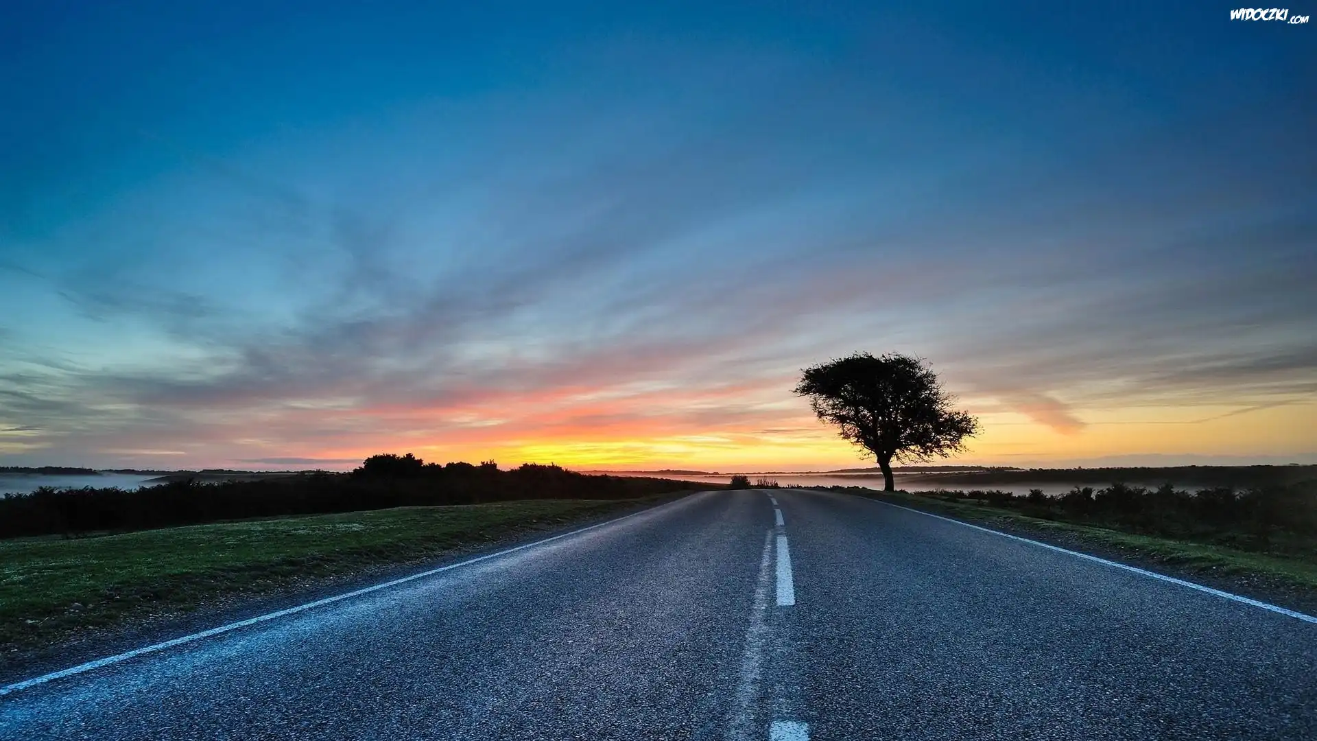 Zdjęcia, Drzewo, Szosa, Wschód, Słońca