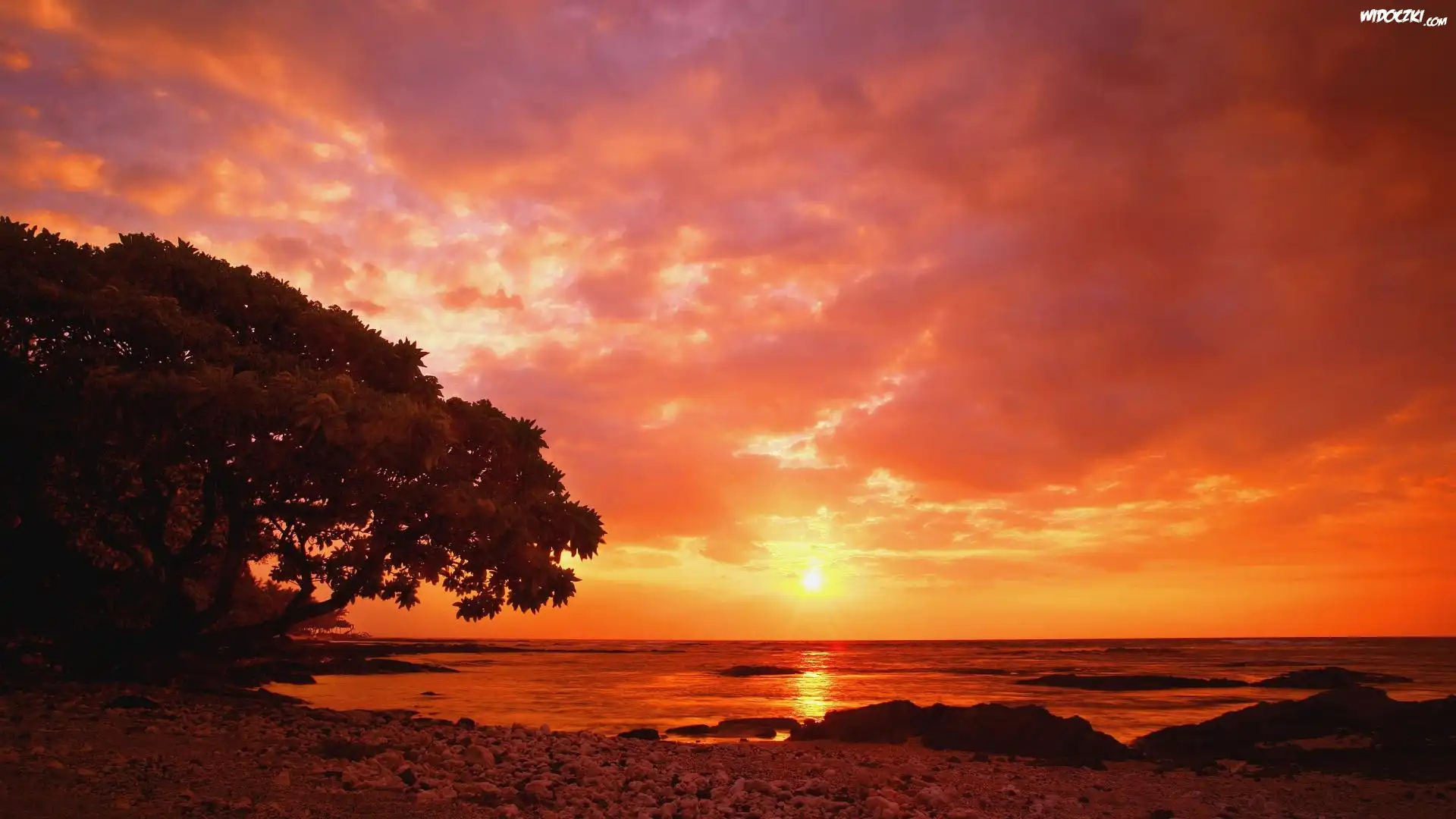 Zdjęcia, Drzewo, Morze, Zachód Słońca