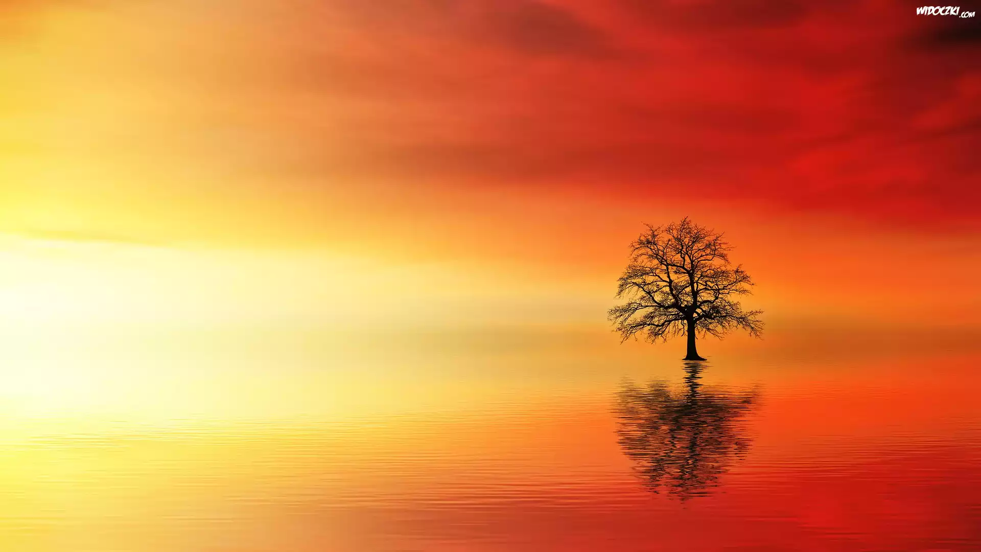 Drzewo, Woda, Zachód słońca