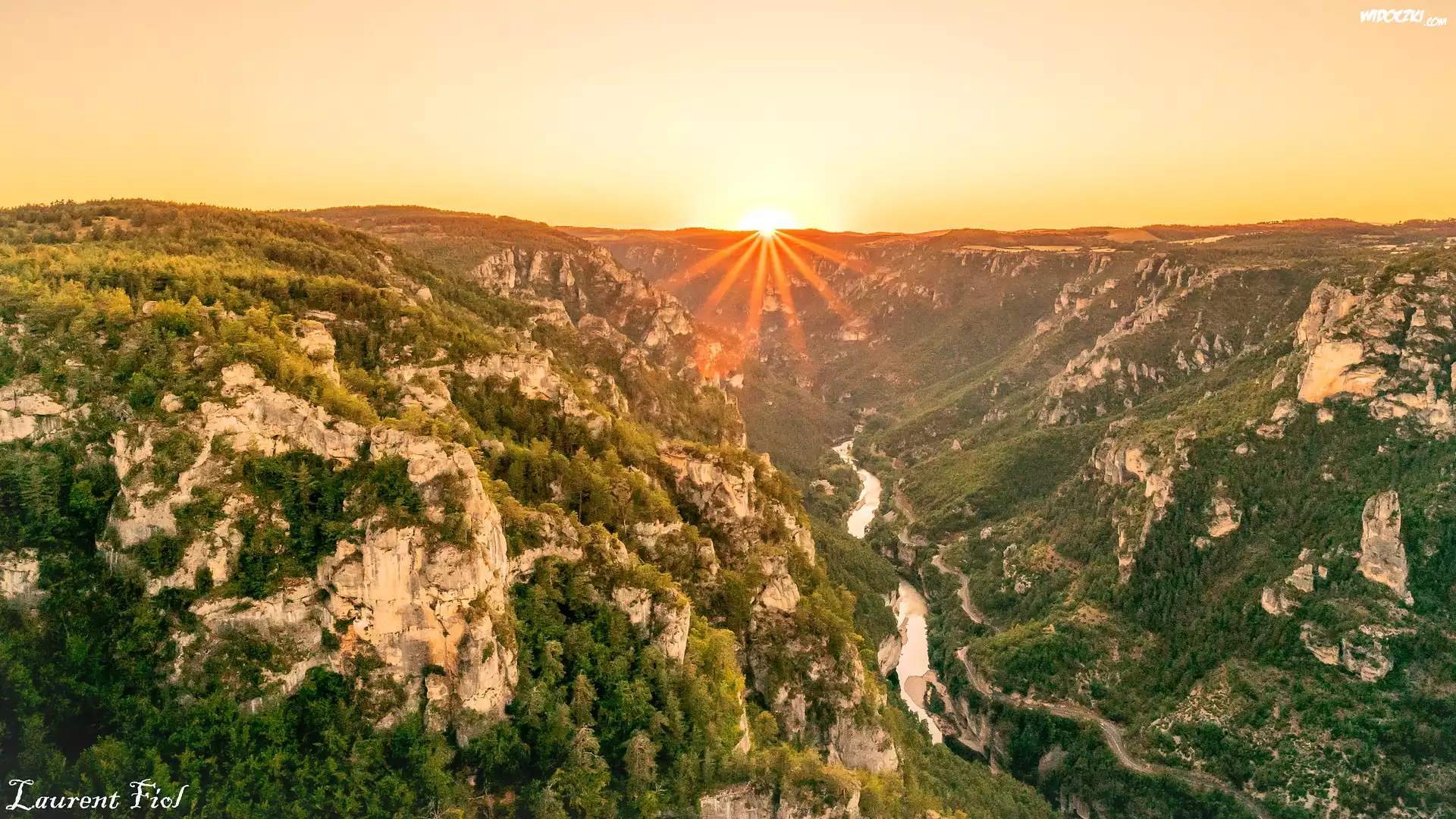 Zdjęcia, Wąwóz, Gorges du Tarn, Rzeka Tarn, Skały, Lasy, Promienie słońca, Francja