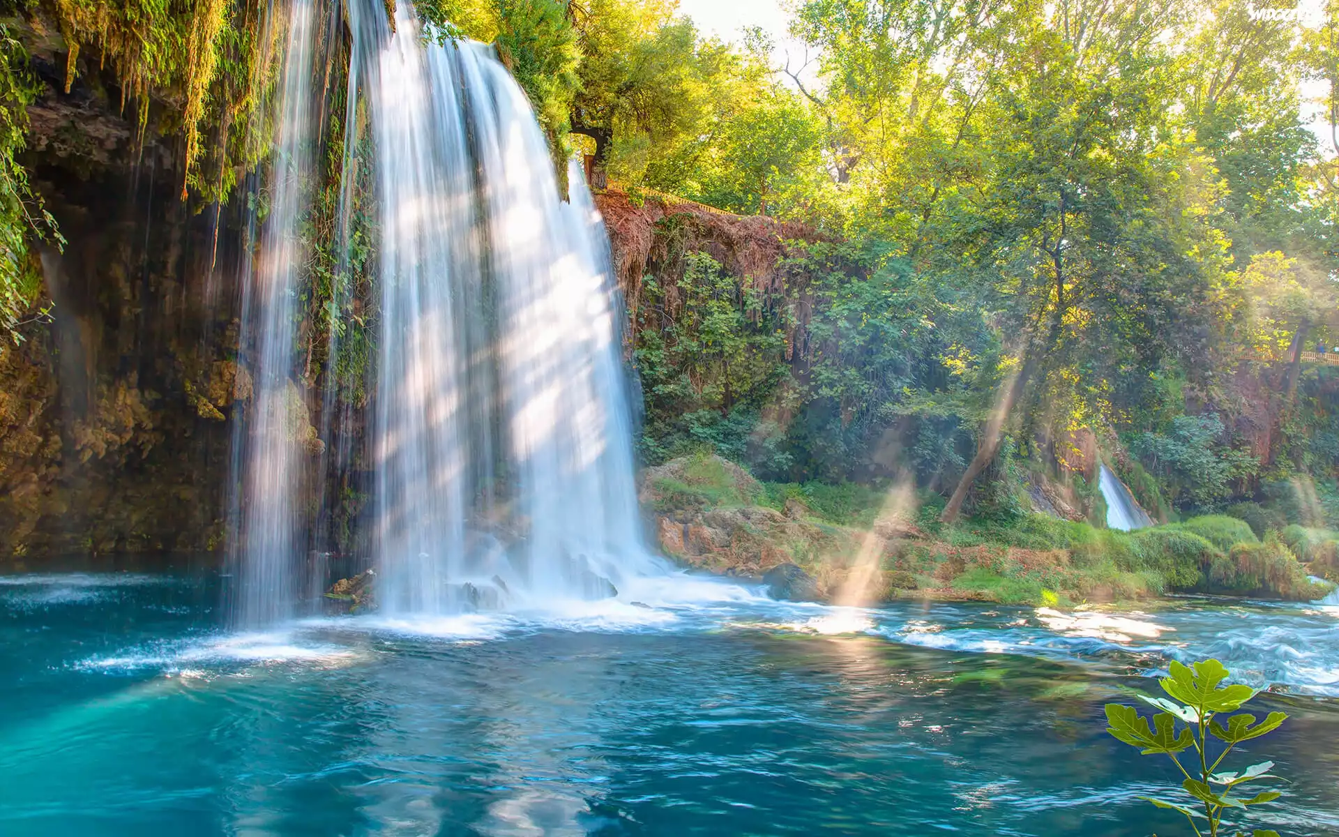 Zdjęcia, Wodospad, Duden Waterfalls, Skały, Rzeka, Drzewa, Antalya, Turcja