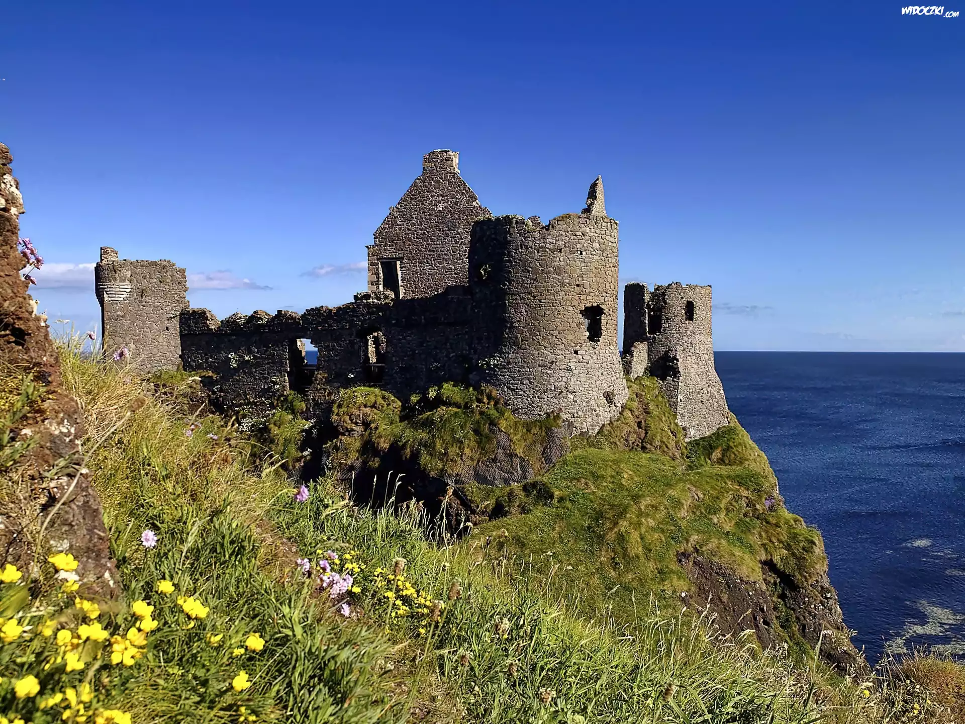 Zdjęcia, Zamek, Dunluce, Ruiny, Morze, Łąka, Irlandia, Północna
