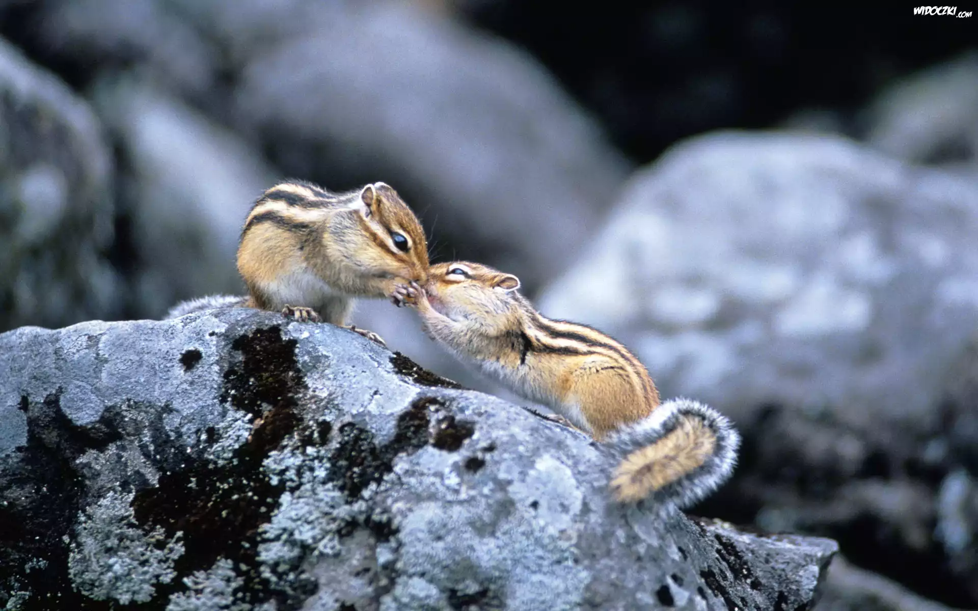 Zdjęcia, Dwa, Chipmunki, Buziak, Skały