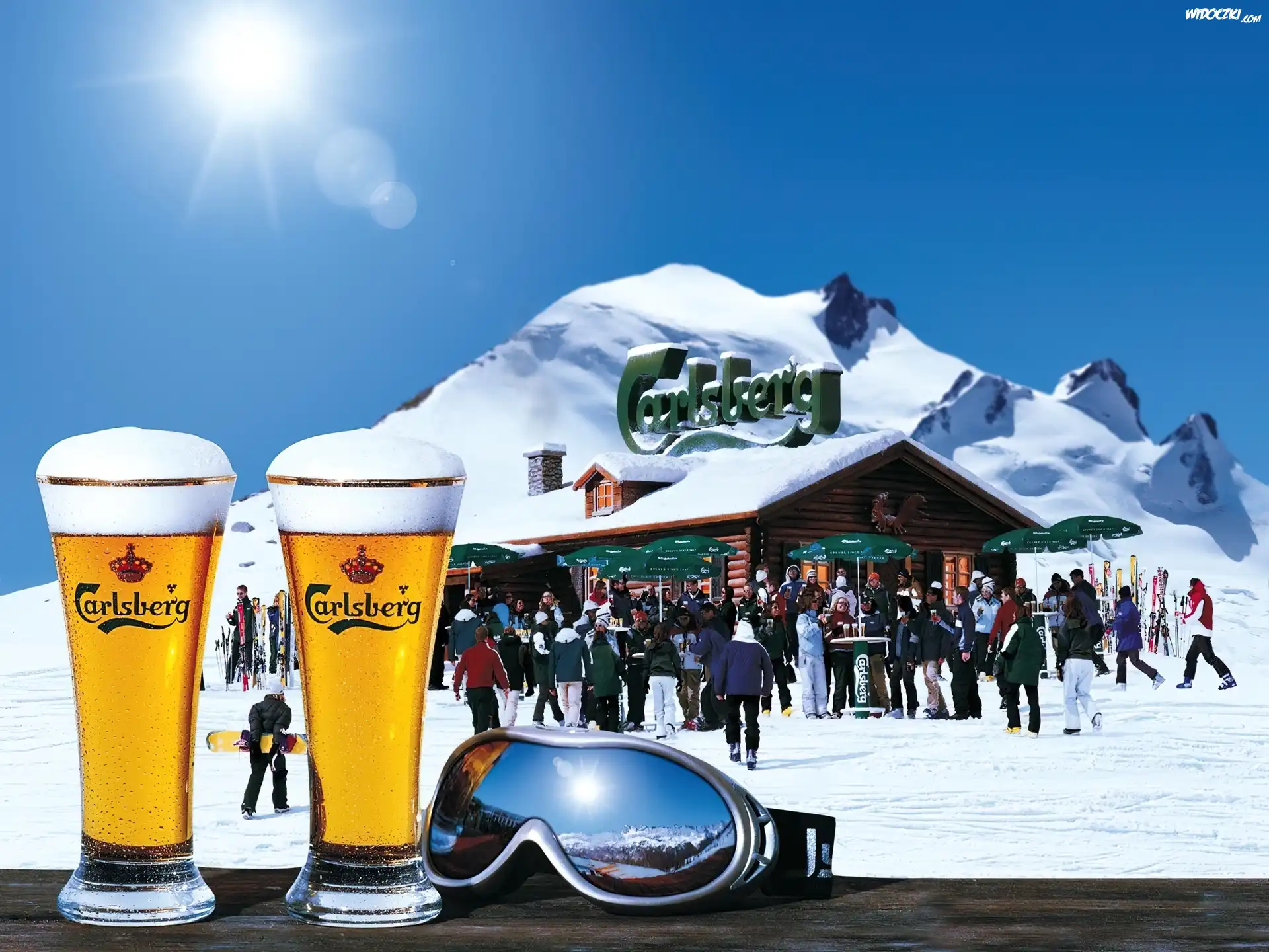 Zdjęcia, Dwa, Kufle, Calsberg, Chata, Góry