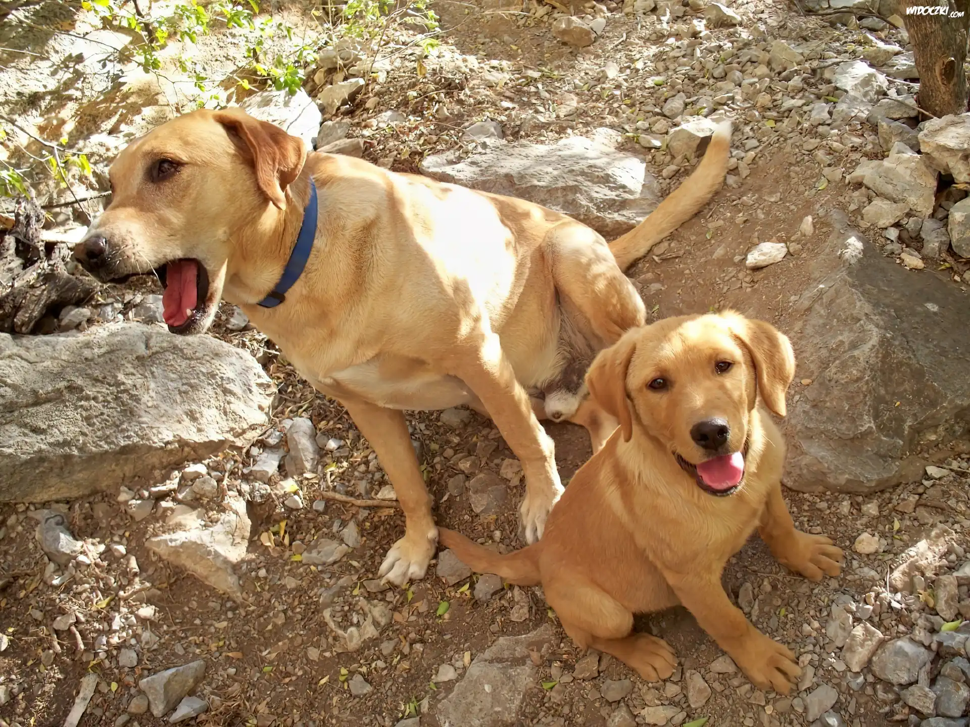 Dwa, Rude, Pieski, Kamienie, Labradory