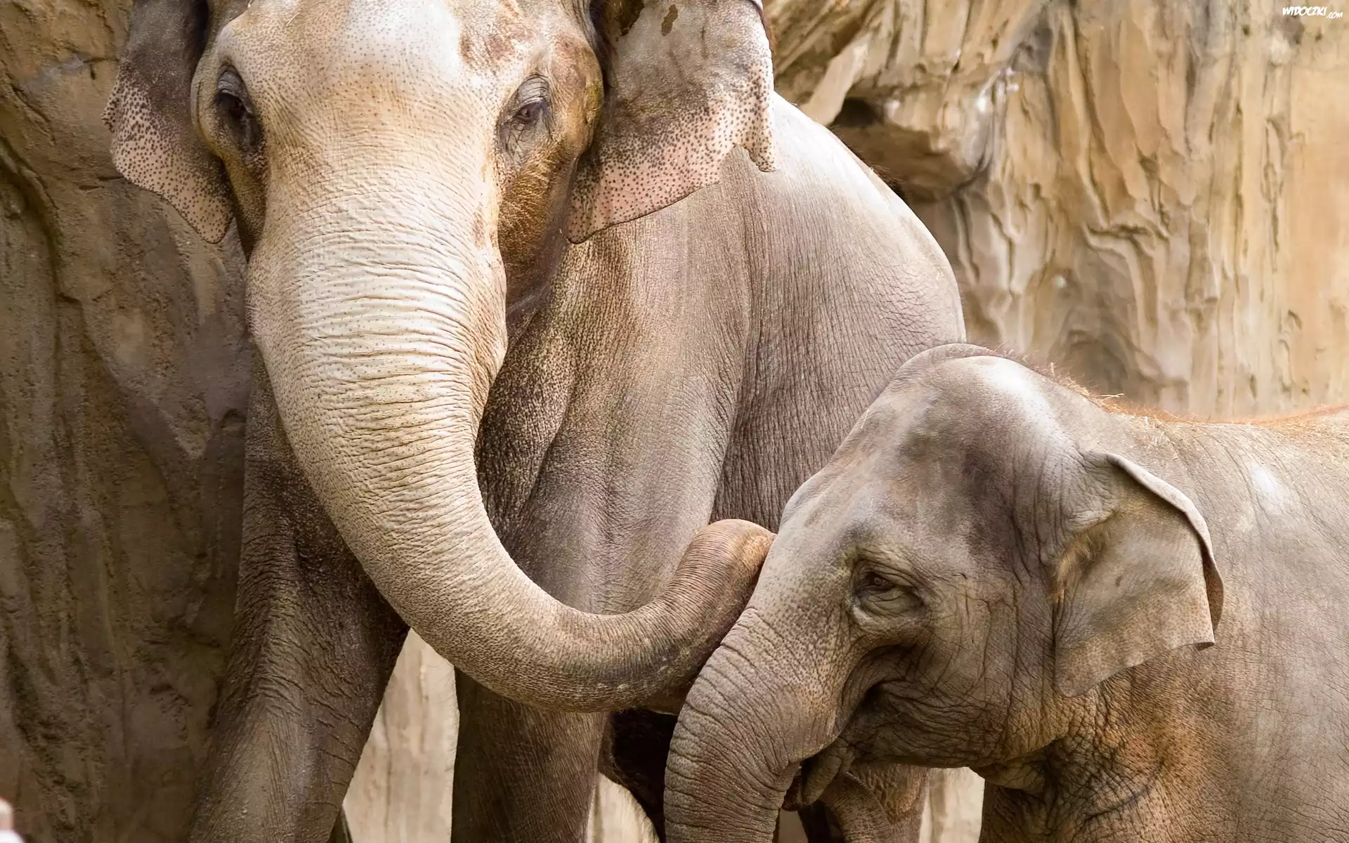 Zdjęcia, Dwa, Słonie, Trąba, Skały