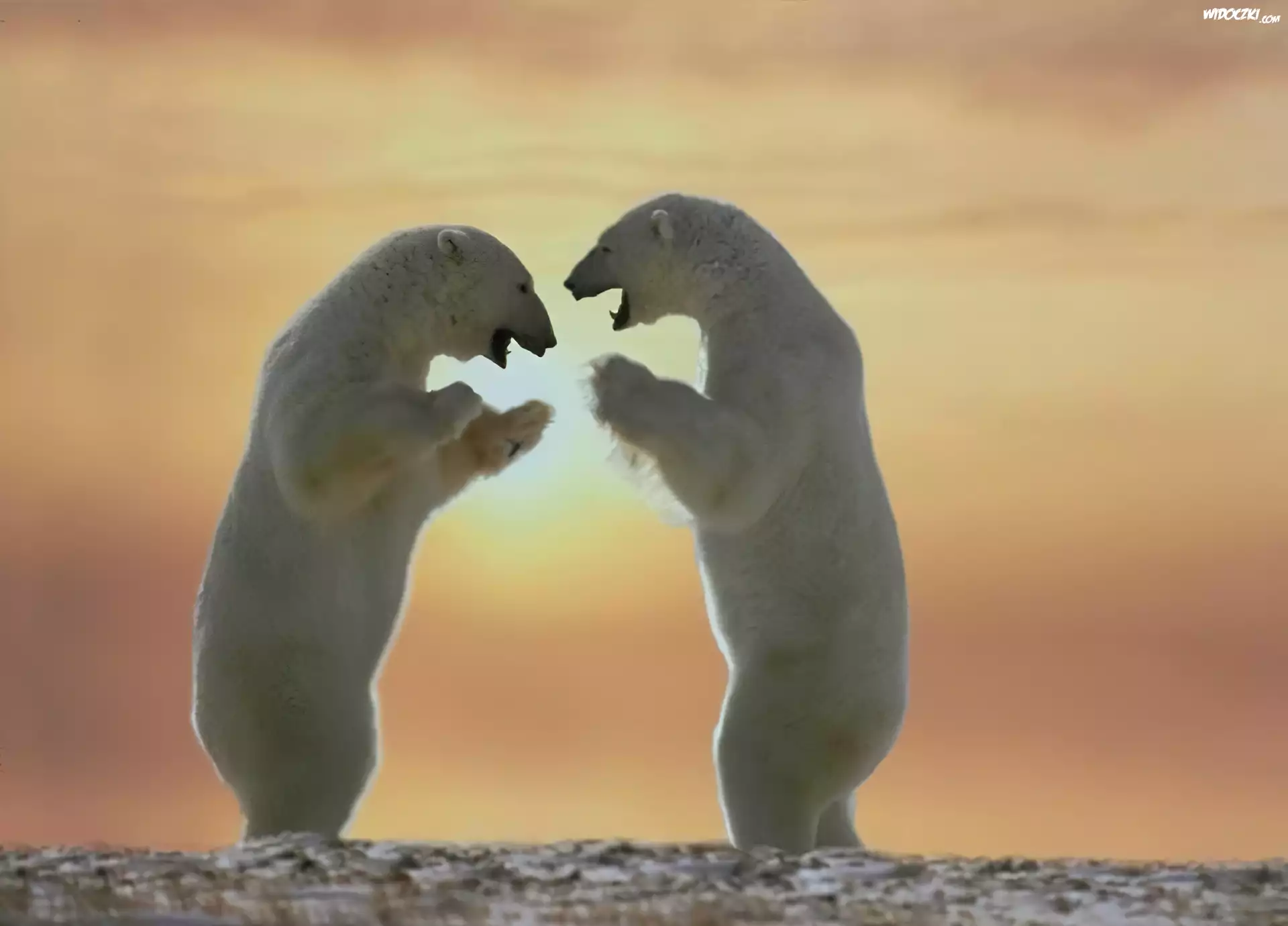Zdjęcia, Dwa, Białe, Misie, Zachód, Słońca