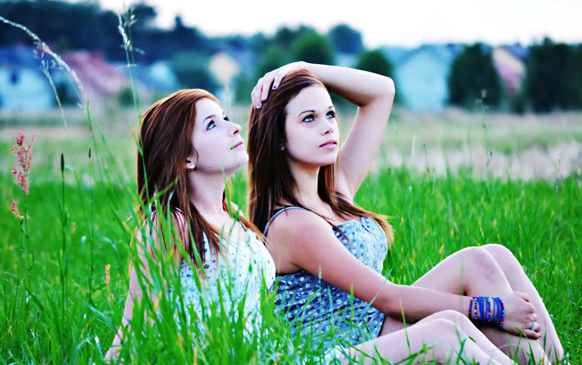 Dwie, Kobiety, Szatynki, Łąka