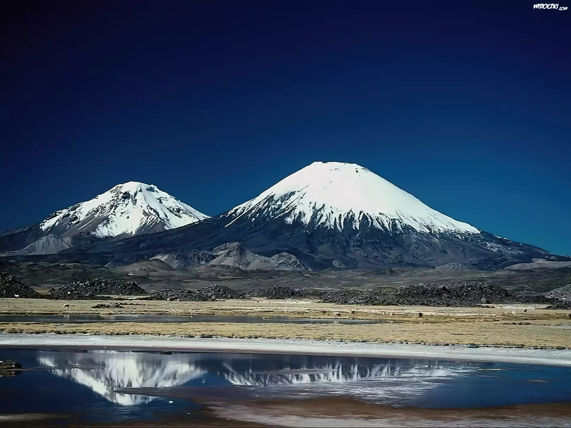 Zdjęcia, dwie góry, woda, śnieg