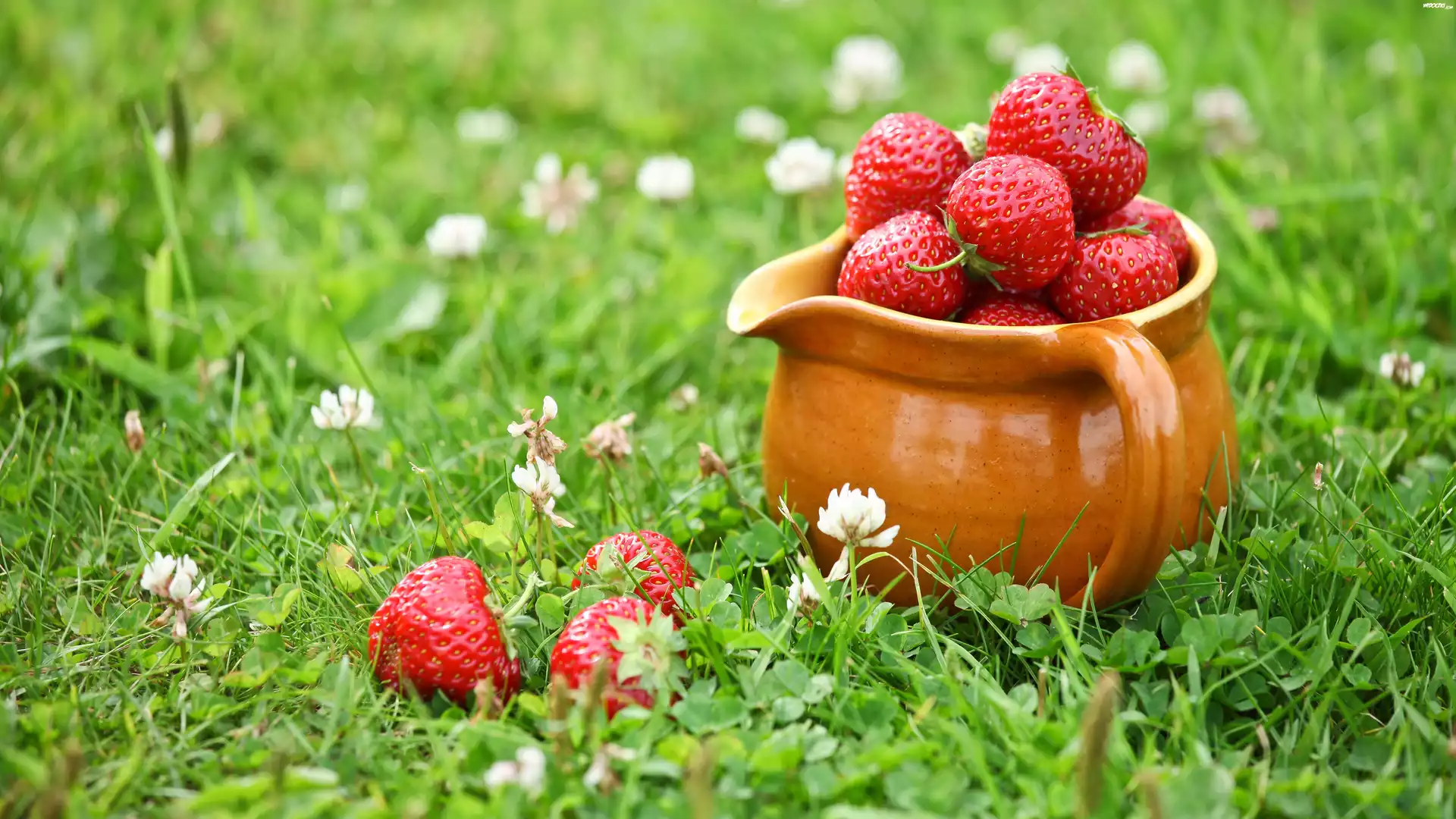 Zdjęcia, Truskawki, Dzbanek, Łąka
