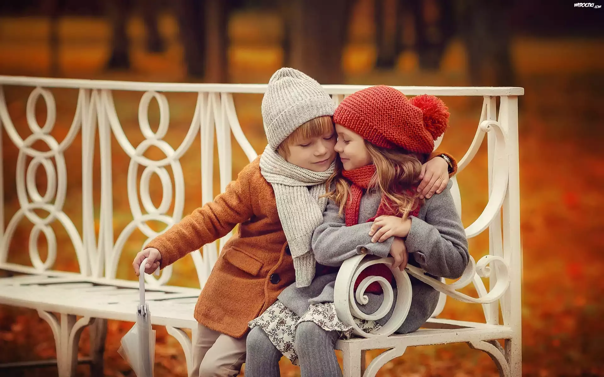Zdjęcia, Dzieci, Chłopiec, Dziewczynka, Ławka