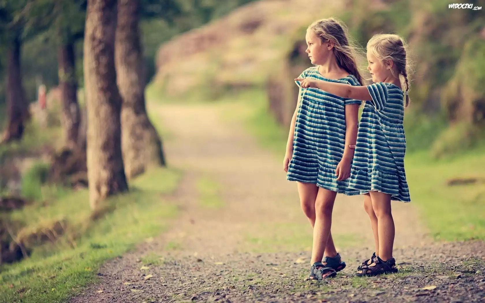Zdjęcia, Dzieci, Dwie, Dziewczynki, Siostry, Las, Ścieżka