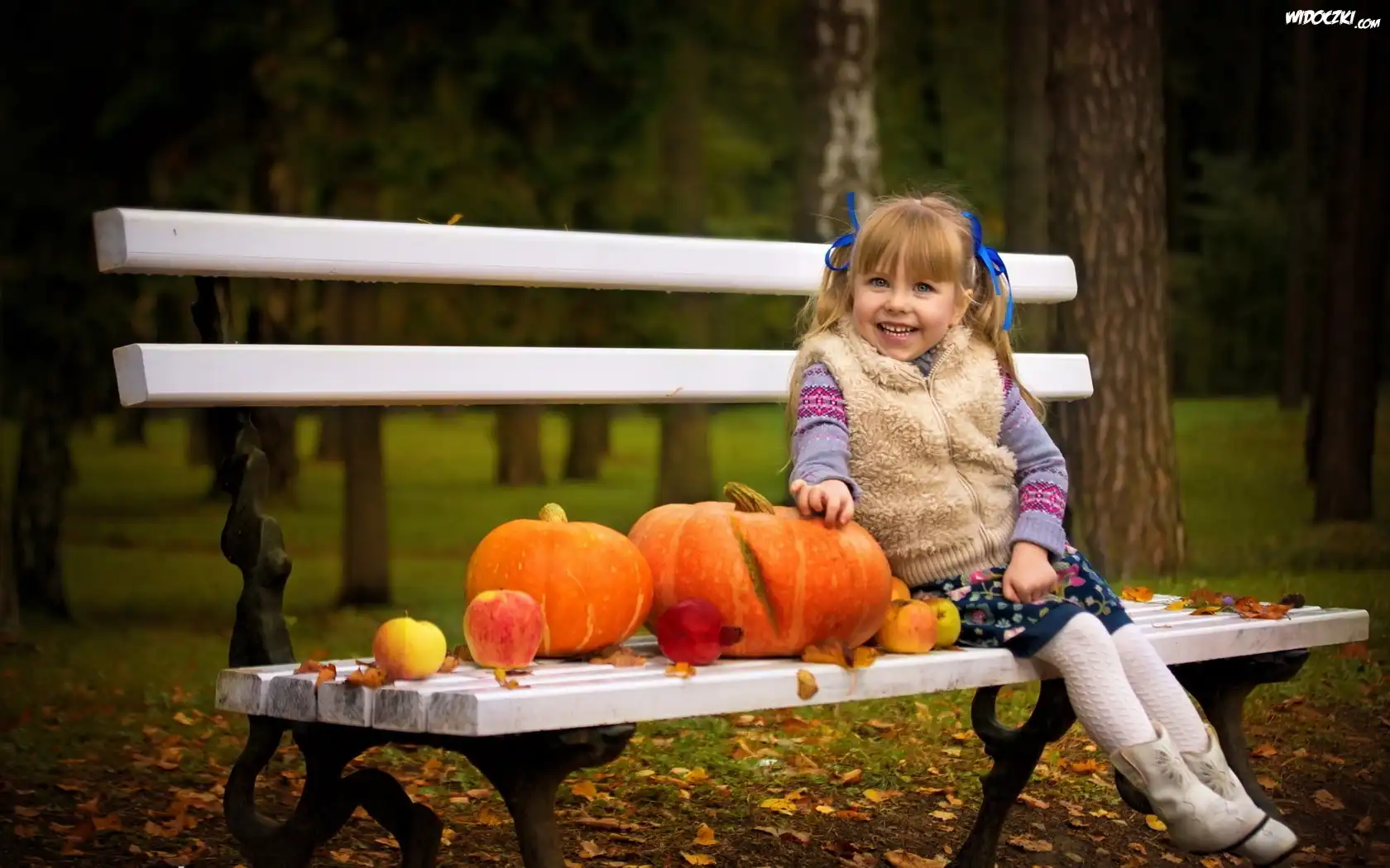 Zdjęcia, Dziecko, Dziewczynka, Park, Ławka, Dynia