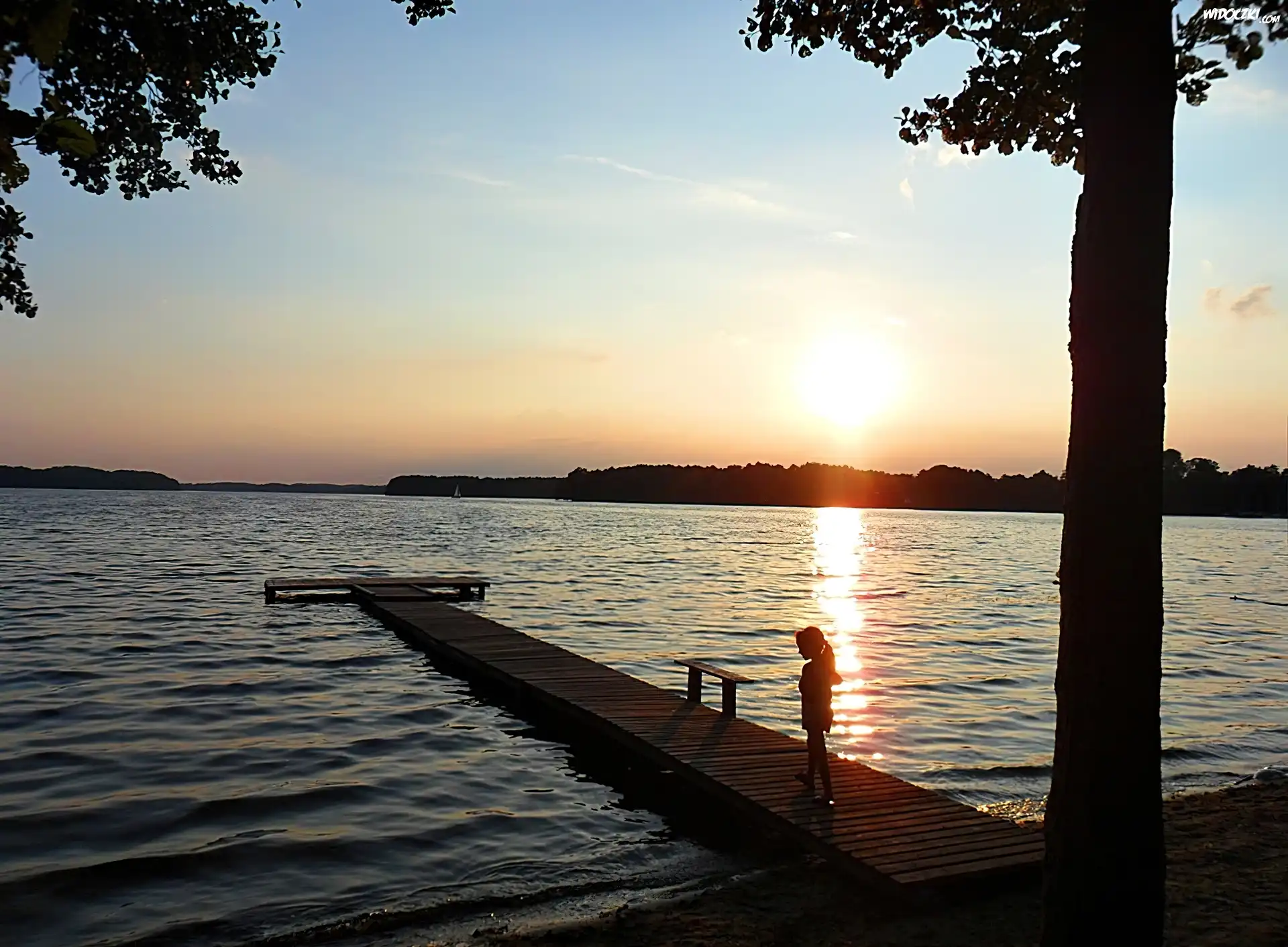 Zdjęcia, Jezioro, Dziecko, Pomost