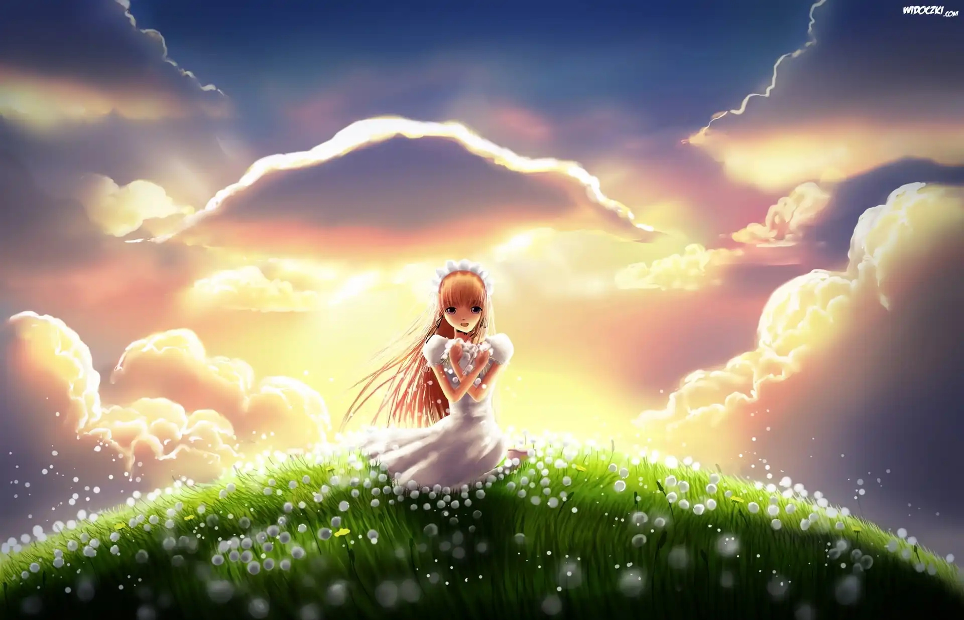 Zdjęcia, Chibionpu, Dziewczyna, Łąka