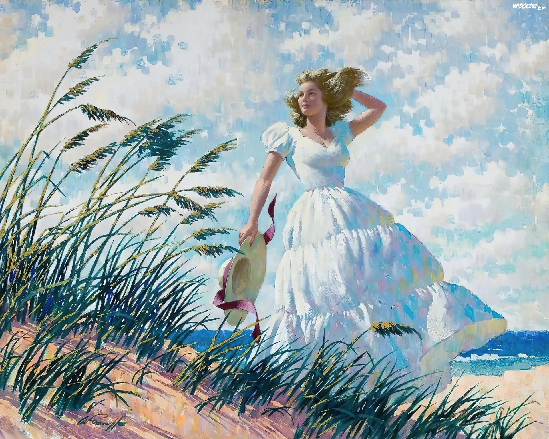 Zdjęcia, Dziewczyna, Morze, Plaża, Wydmy