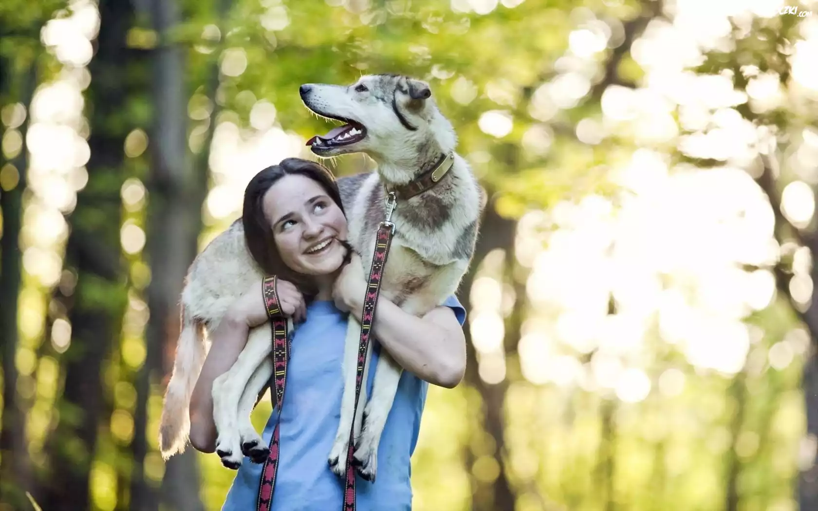 Zdjęcia, Dziewczyna, Pies, Smycz, Park