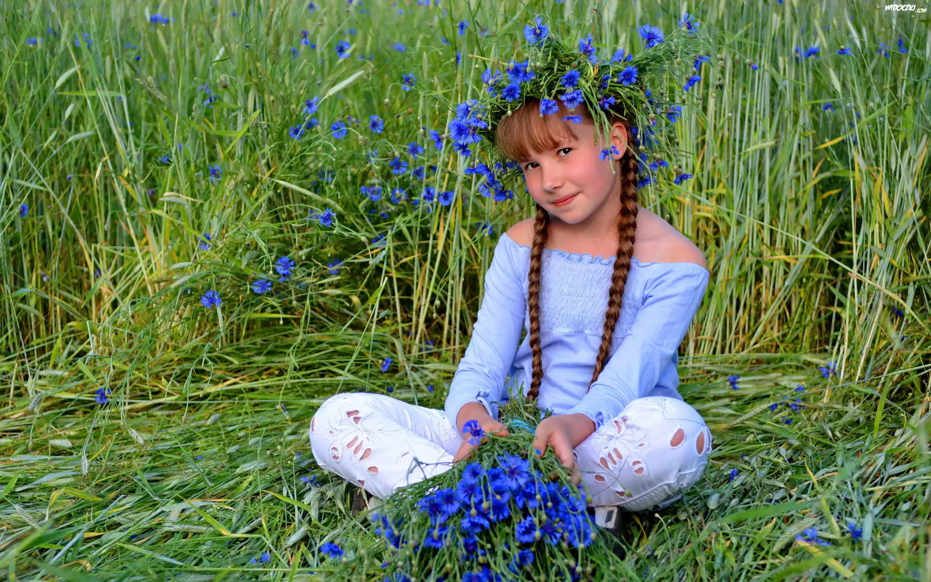Dziewczynka, Łąka, Wianuszek, Bukiecik, Chabrów