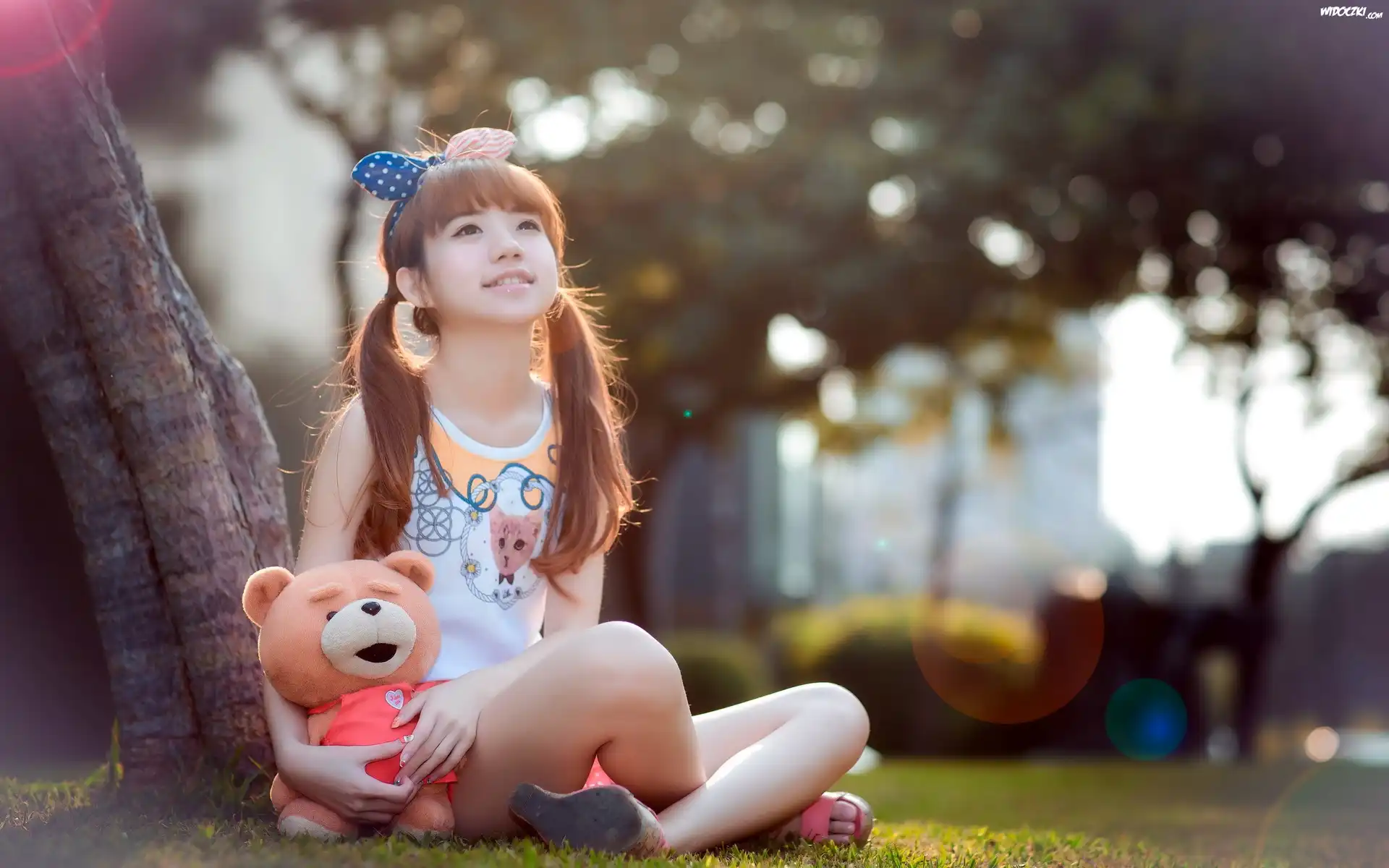 Zdjęcia, Dziewczynka, Zabawka, Drzewa, Park