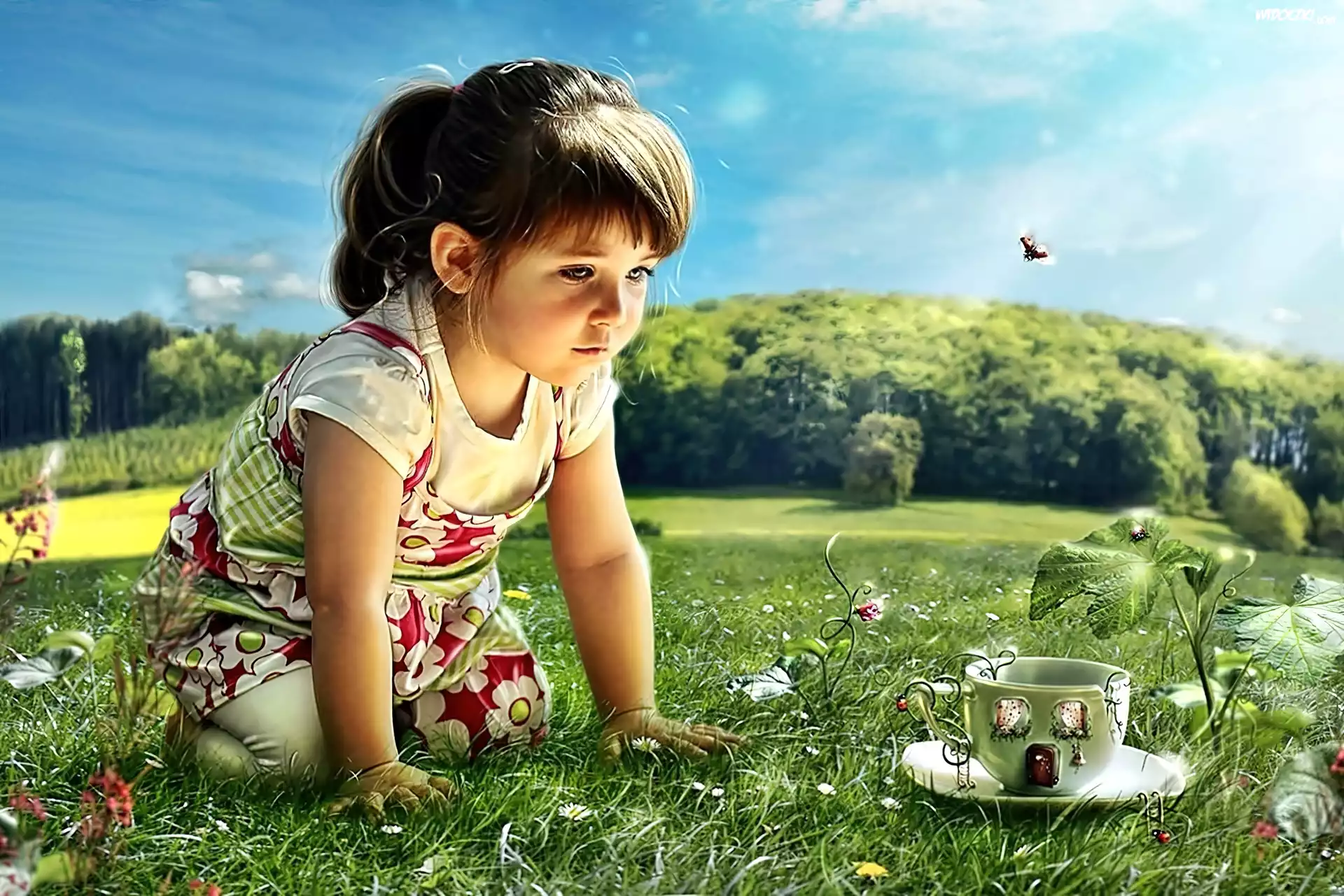 Dziewczynka, Łąka, Las, Rozmycie