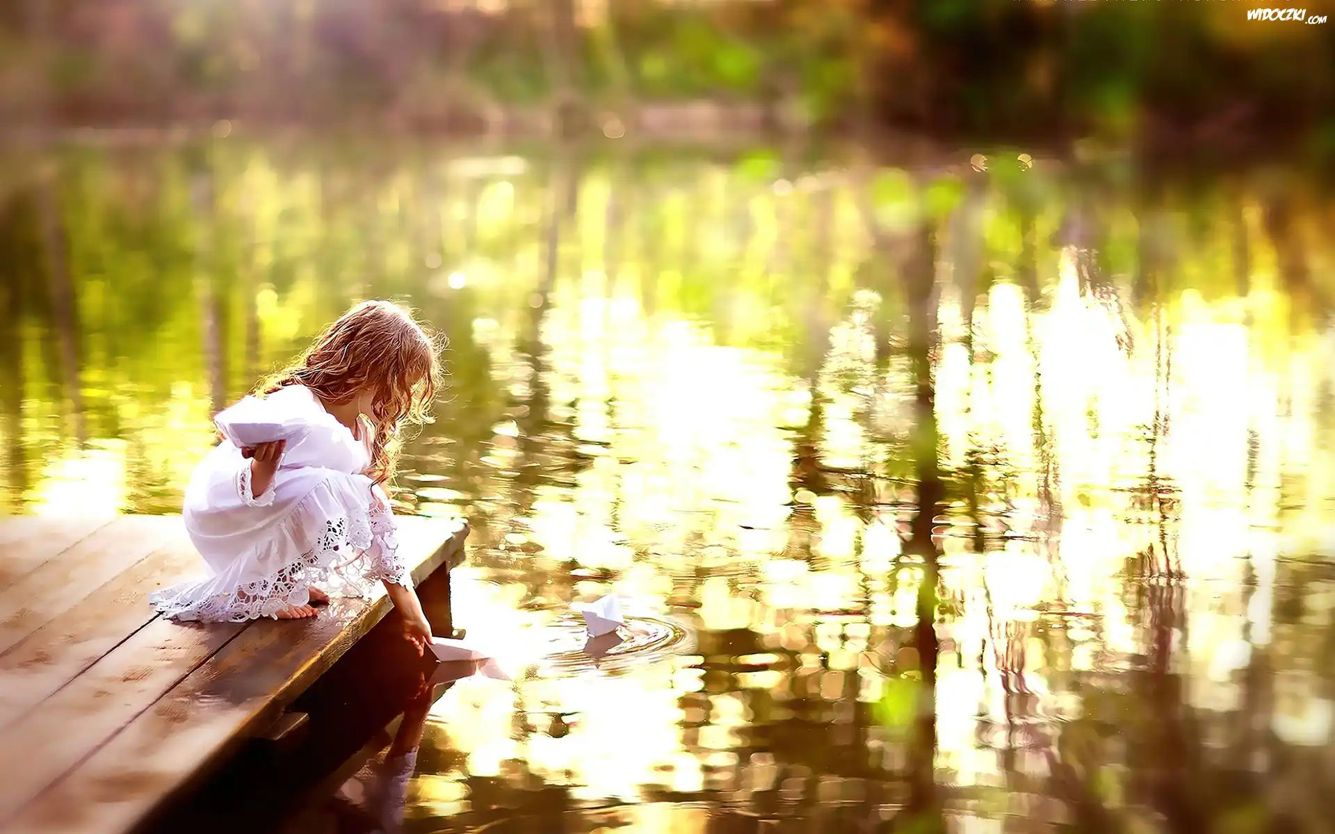 Dziewczynka, Pomost, Jeziorko, Staw, Papierowe, Statki